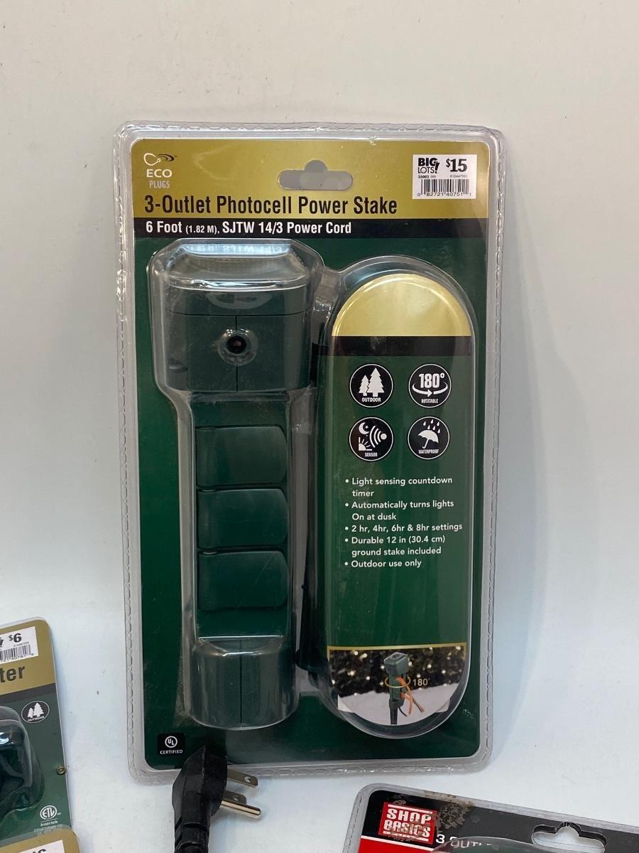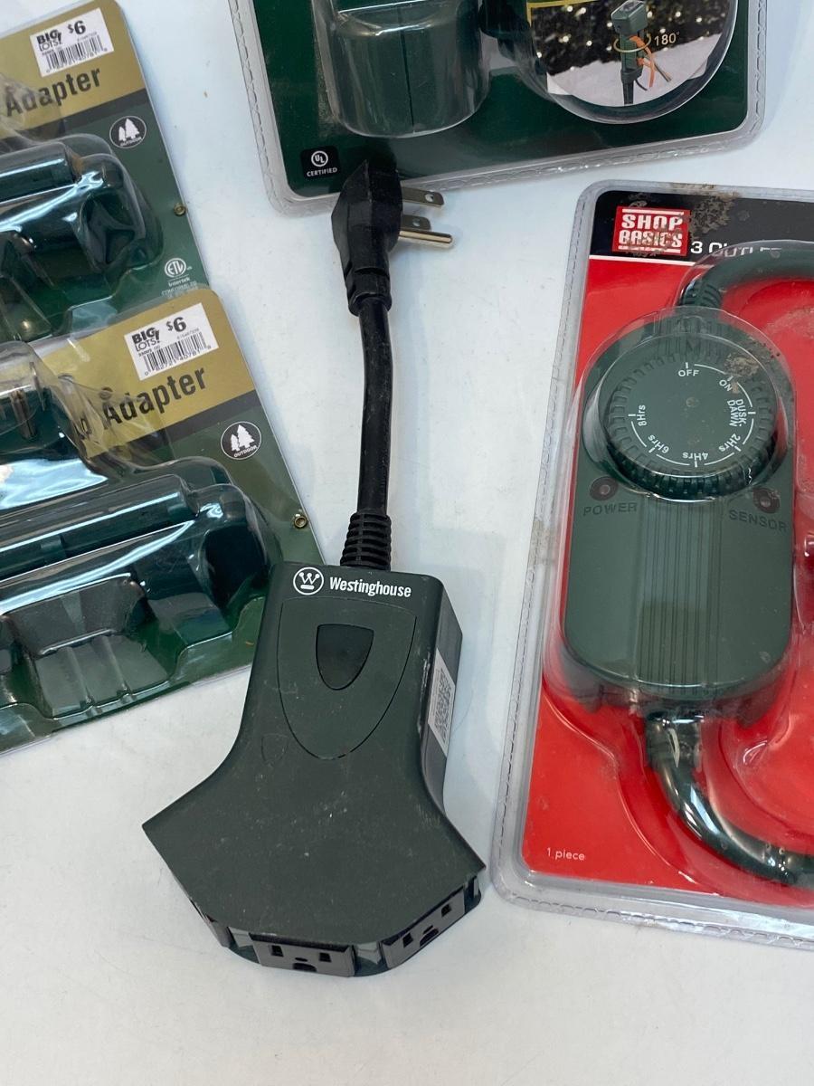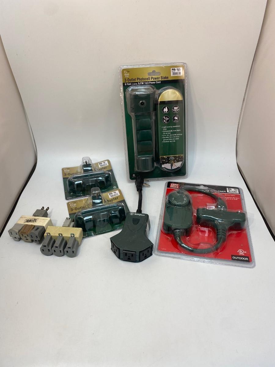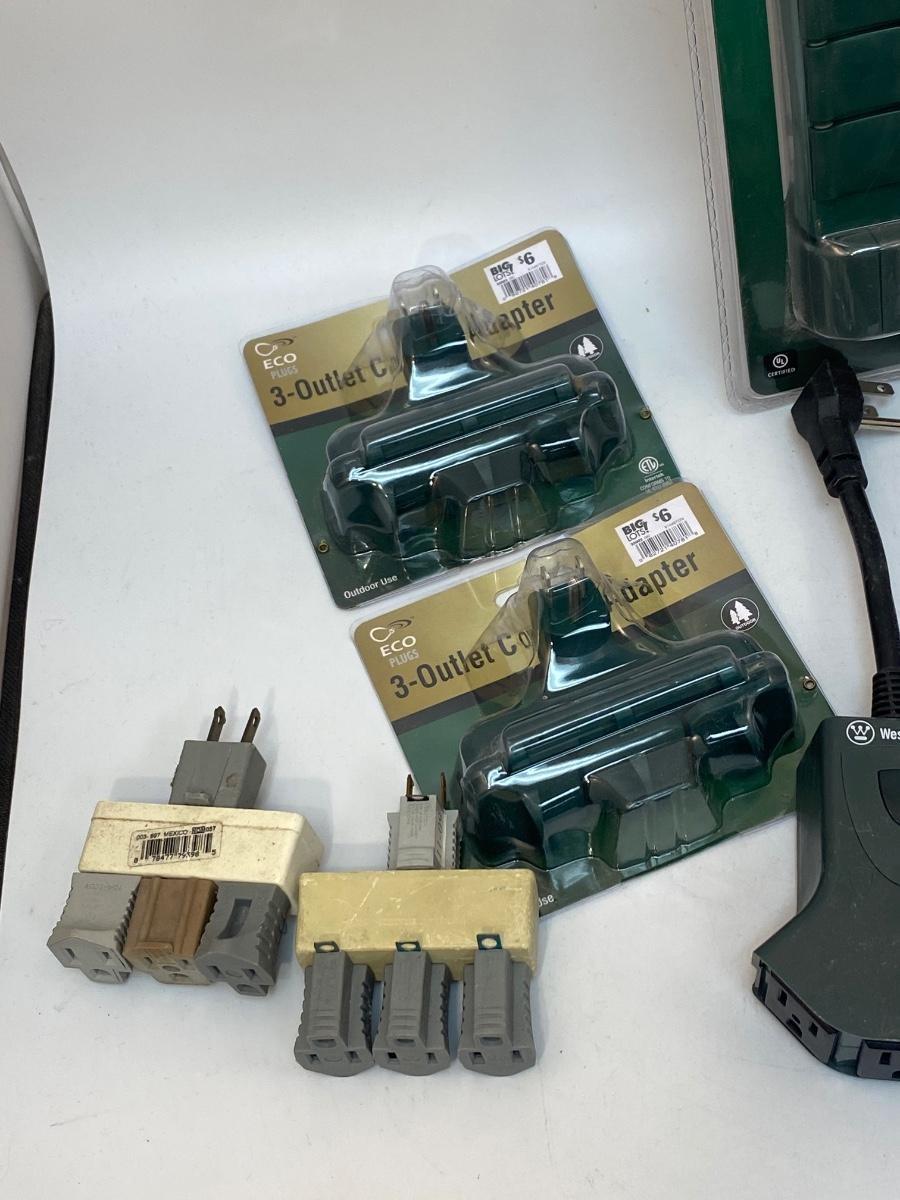 Various Power Cord Outlet Adapters Timer. Some new in package.