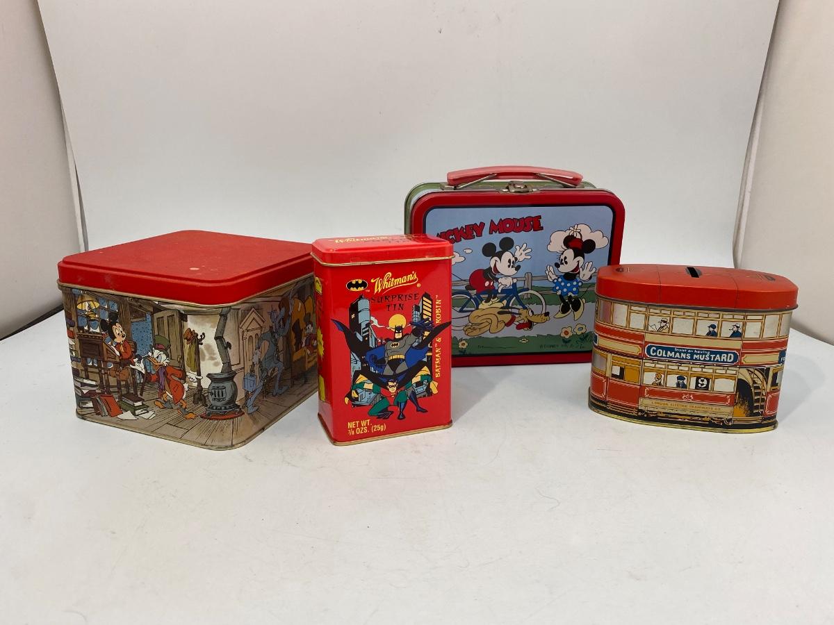 Various Small Tins Mickey Mouse Batman Coin Bank