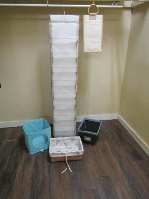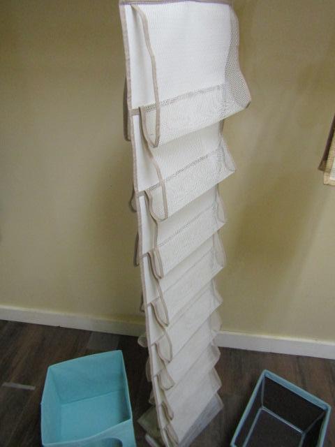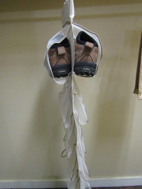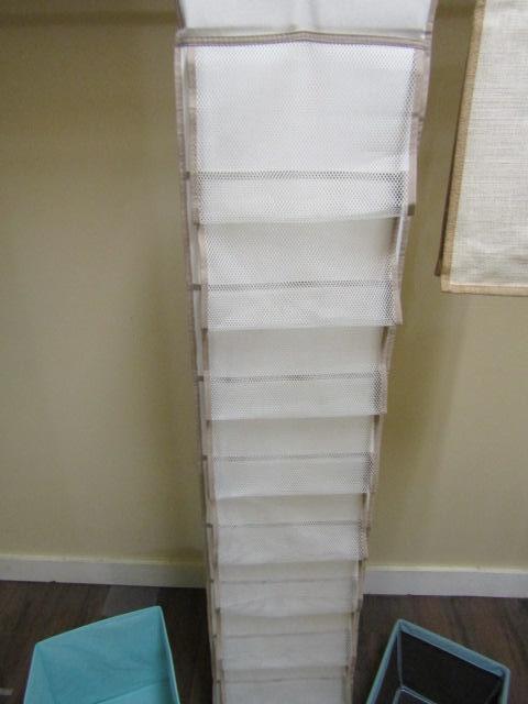 Various Storage Solutions. Boxes and Closet Shoe Hanger. Shoes not included.