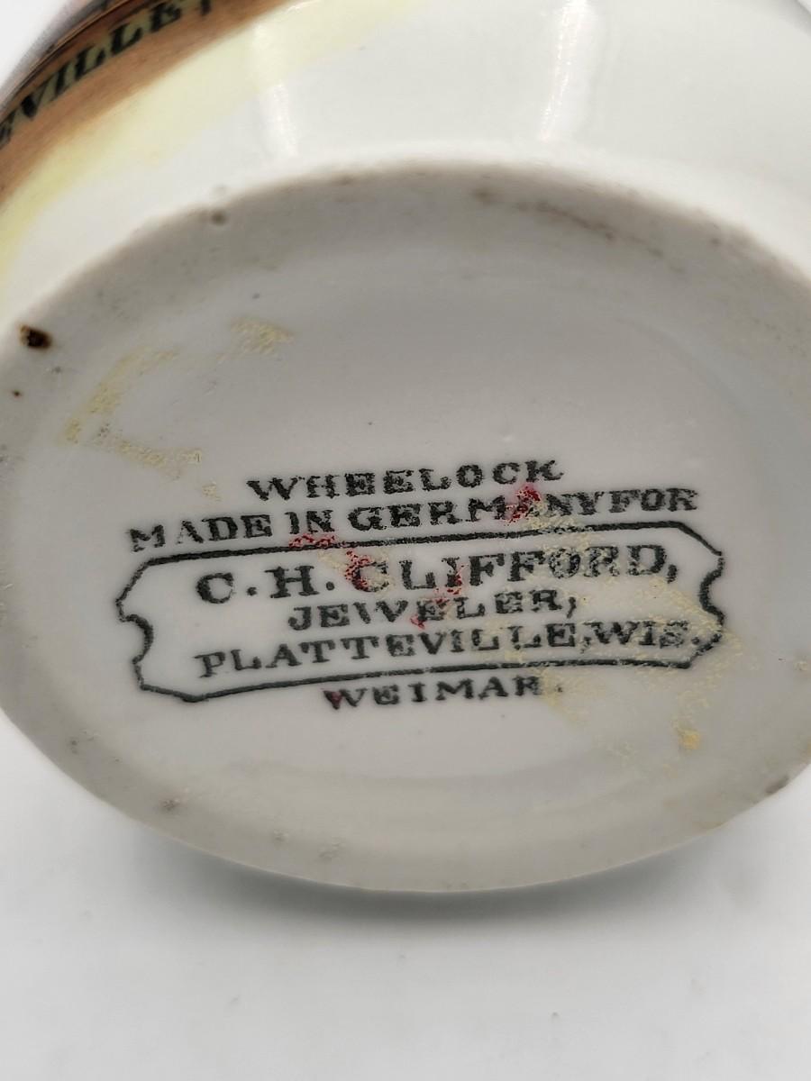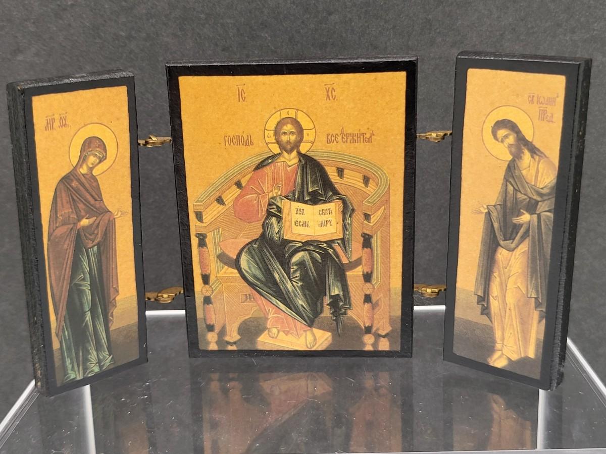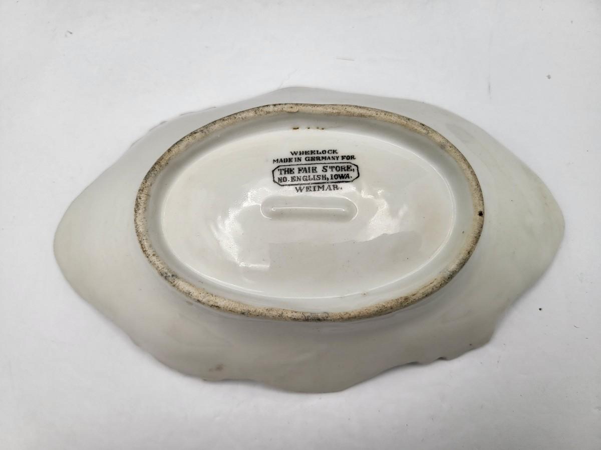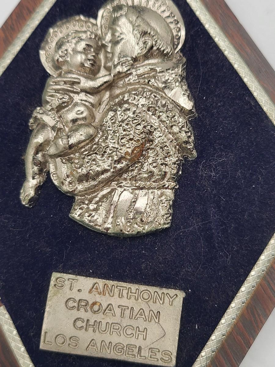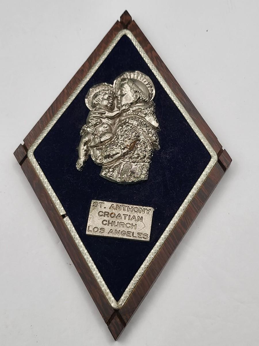 Indian cup, metal jewelry casket, religious plaque, Weimar Germany porcelain pitcher and trinket dish.