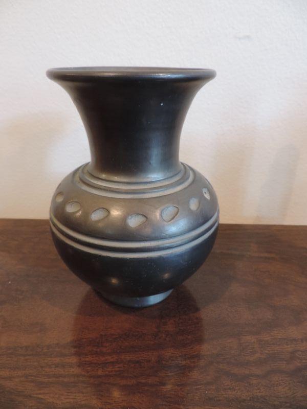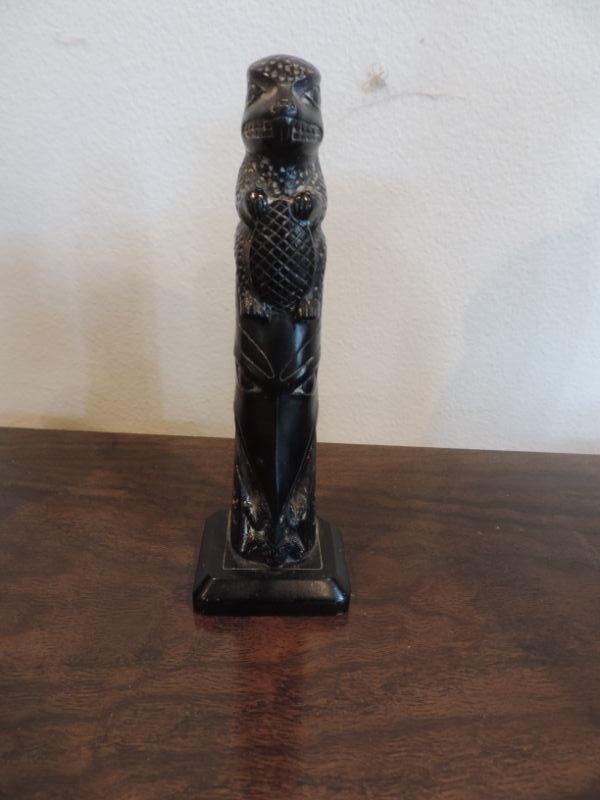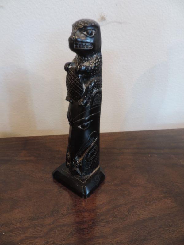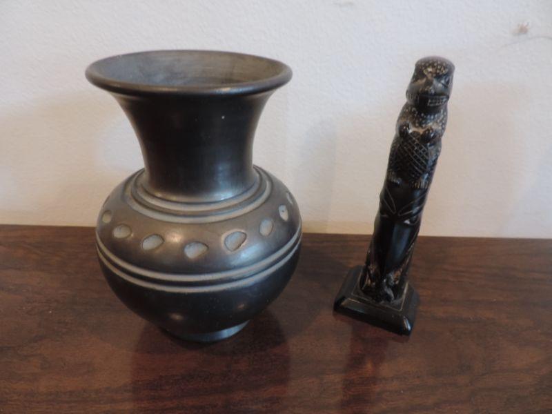 BLACK DECORATIVE VASE AND SMALL TOTEM POLE