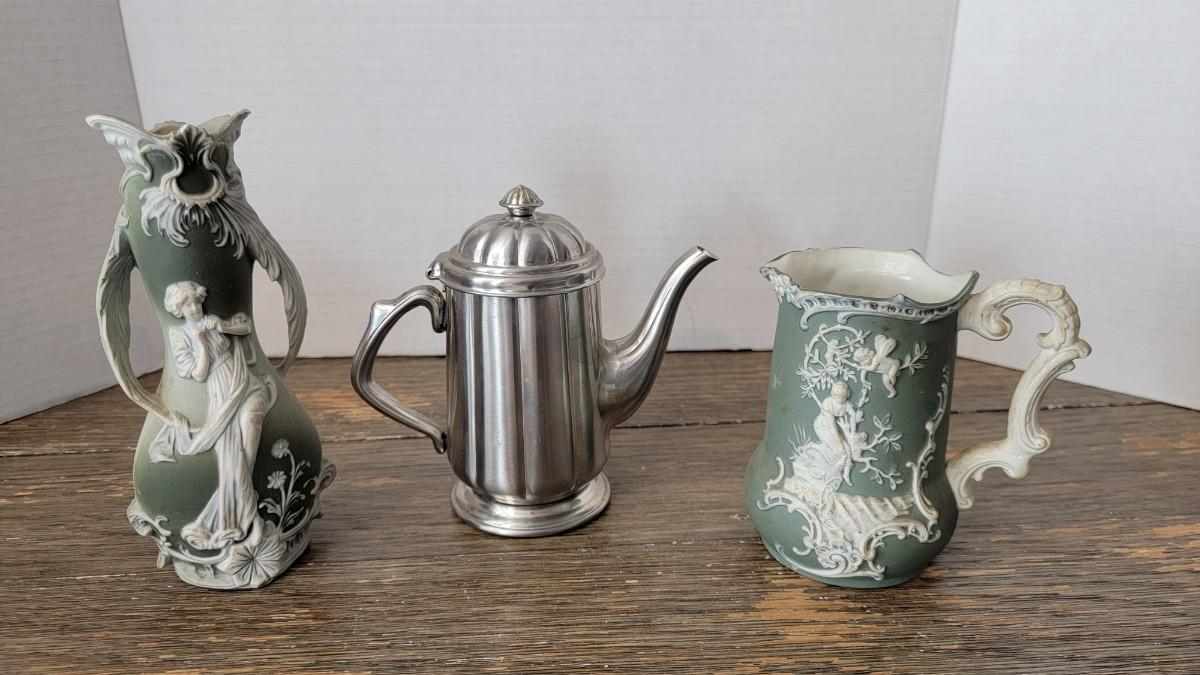 Vase, Creamer and Oneida Kettle