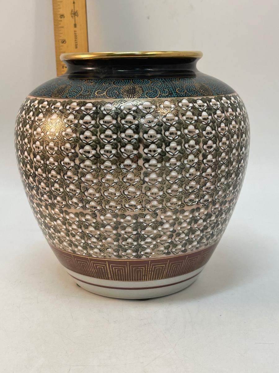 Ornate Ceramic Cloisonne Style Vase Planter Pot Japan