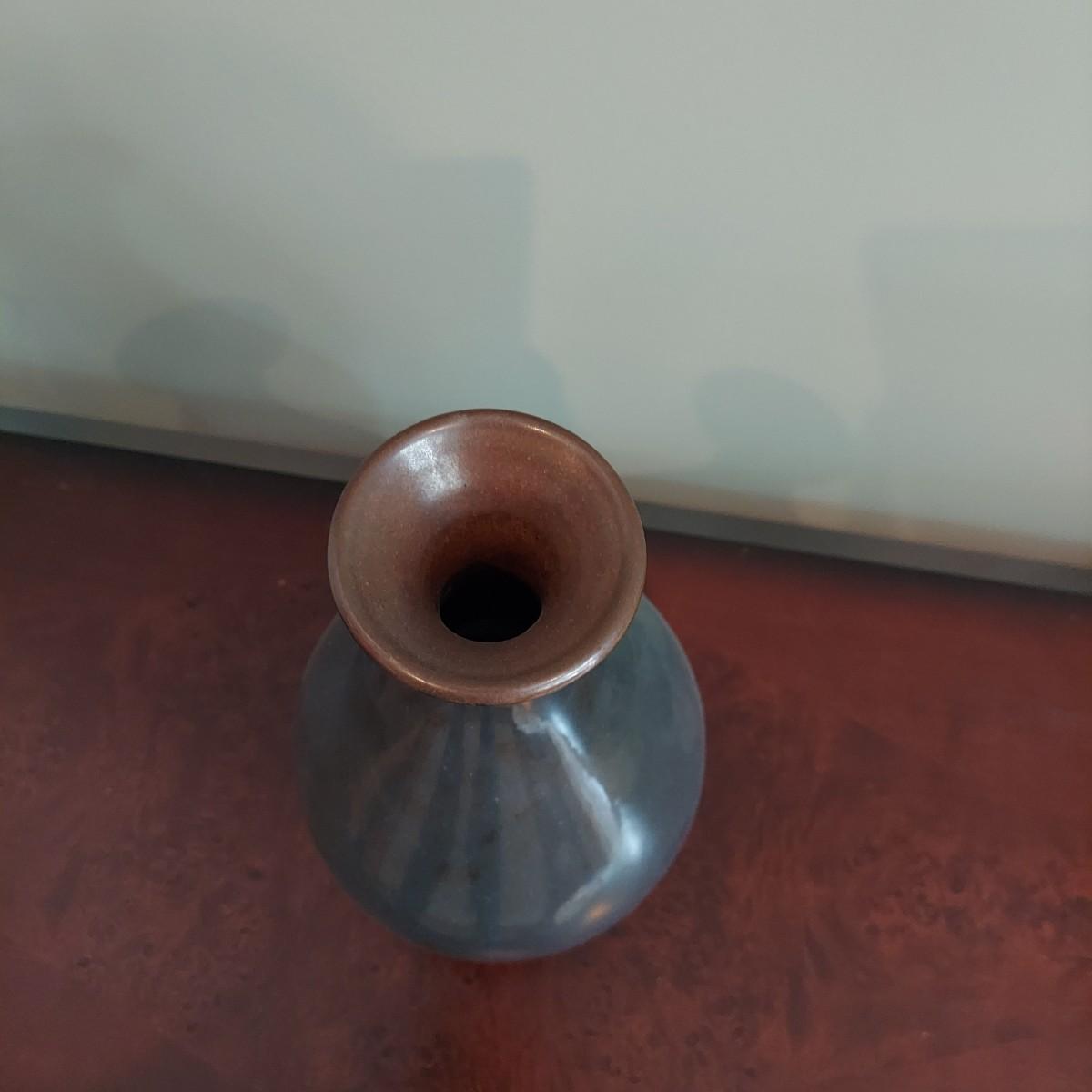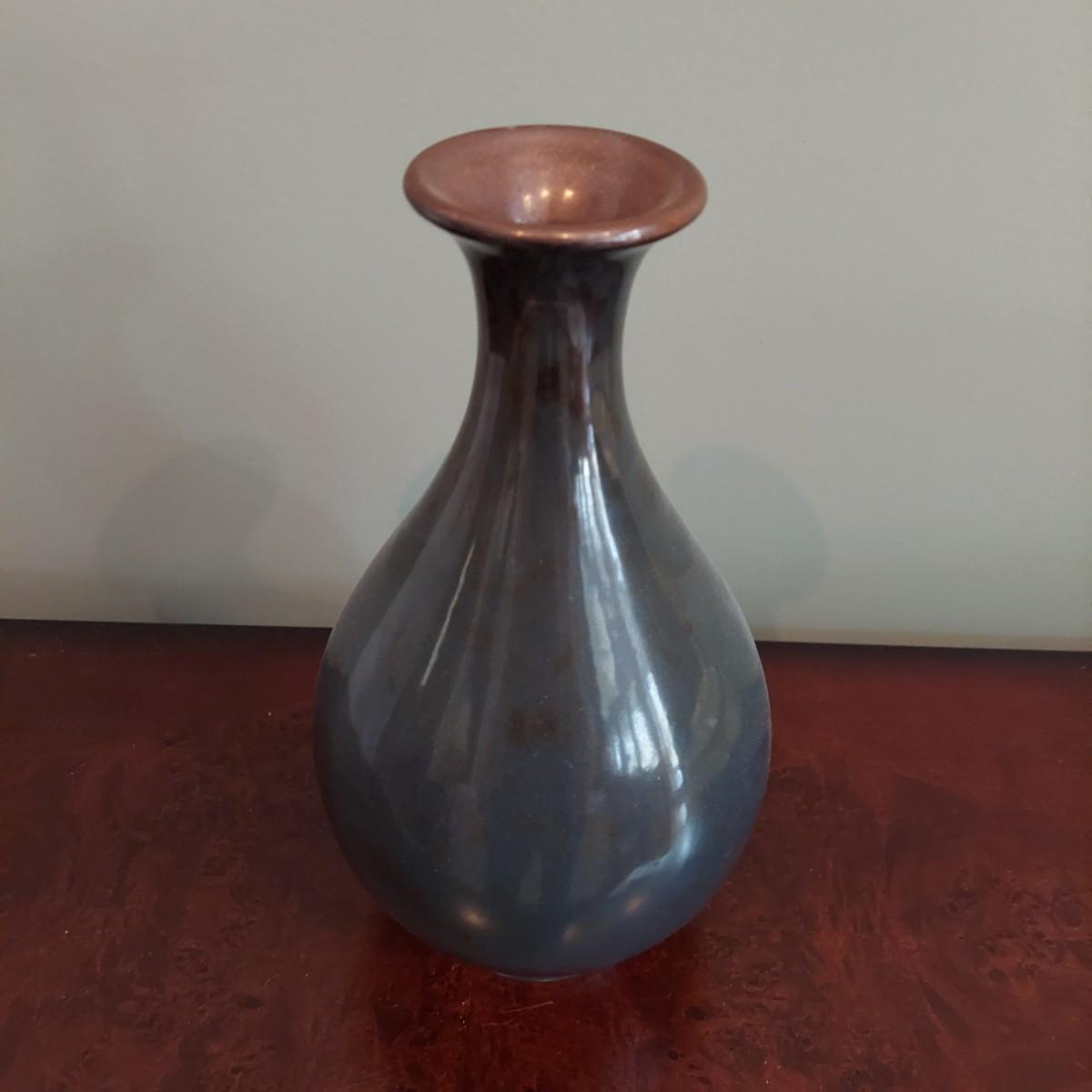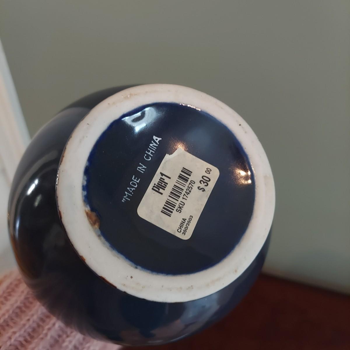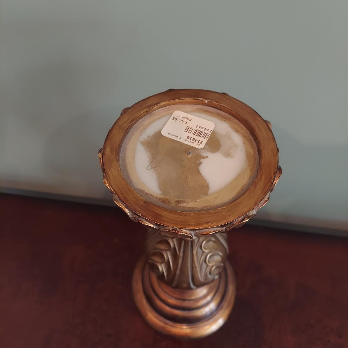 Three pieces of home decor including a ceramic vase with a dried eucalyptus arrangement. Plus another ceramic vase and a carved wood candle holder. Tallest vase is 12"H alone and 32"H with plants. Please see photos for details. Local pickup only.