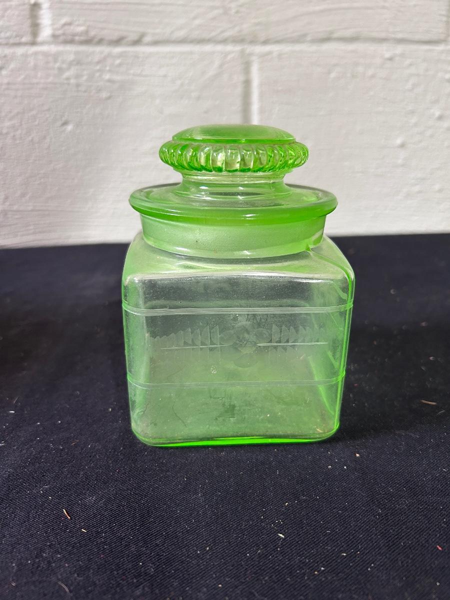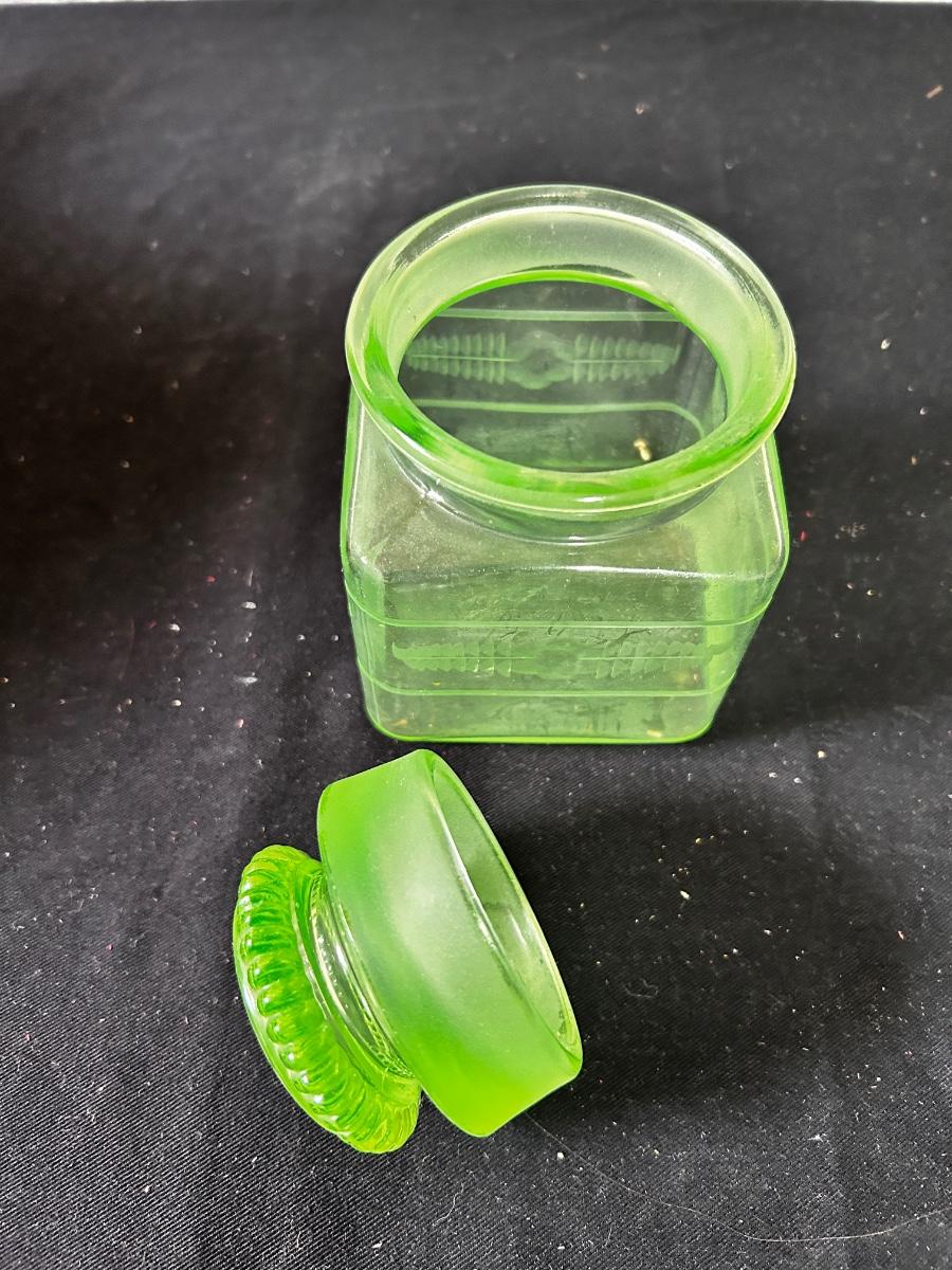 Vaseline glass covered dish / candy jar