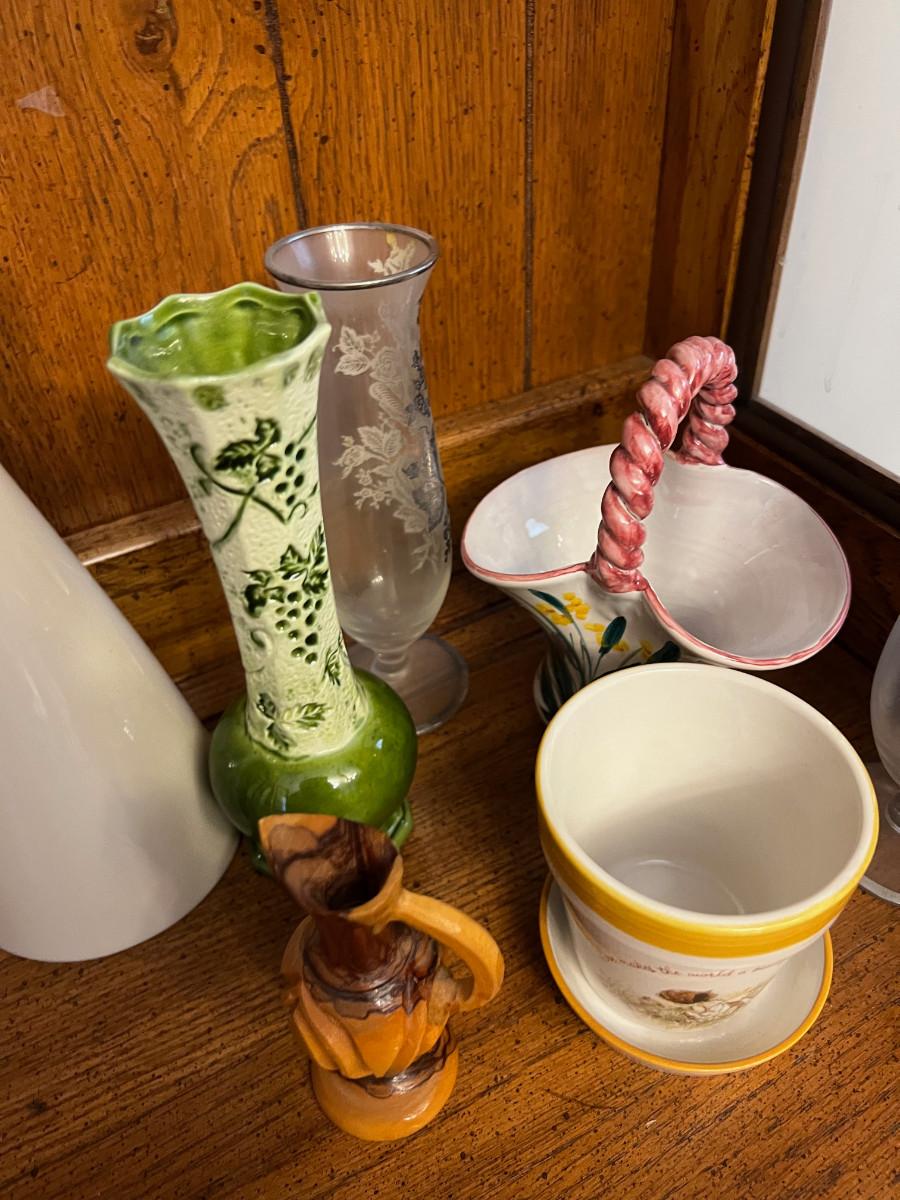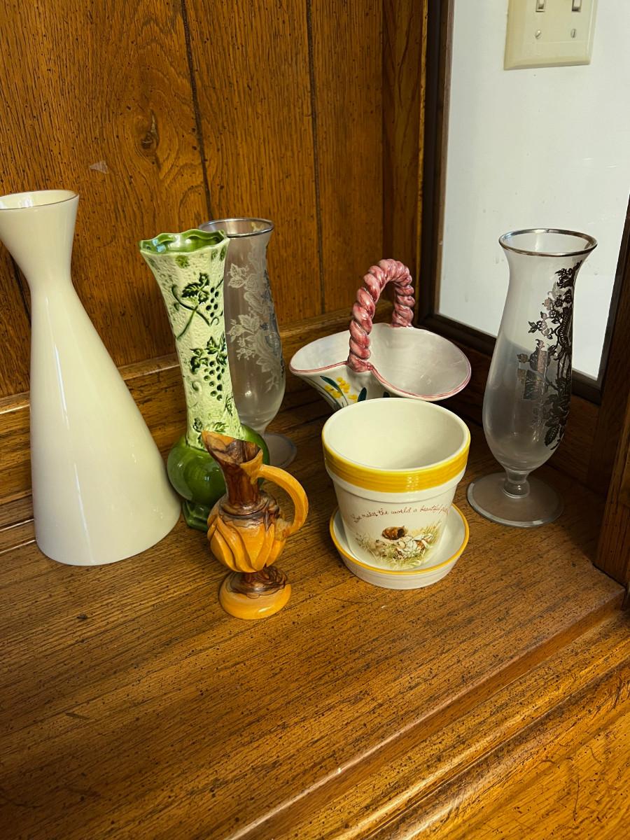 VASES; Glass, Ceramic, Wood