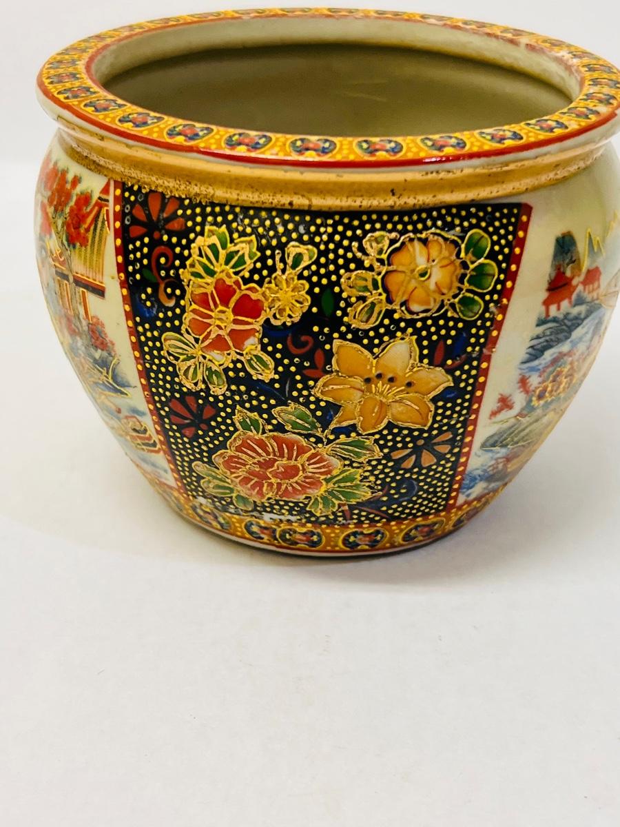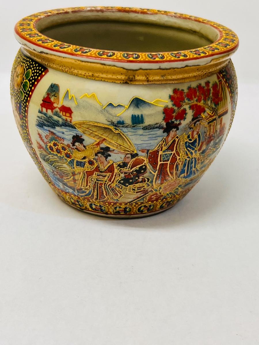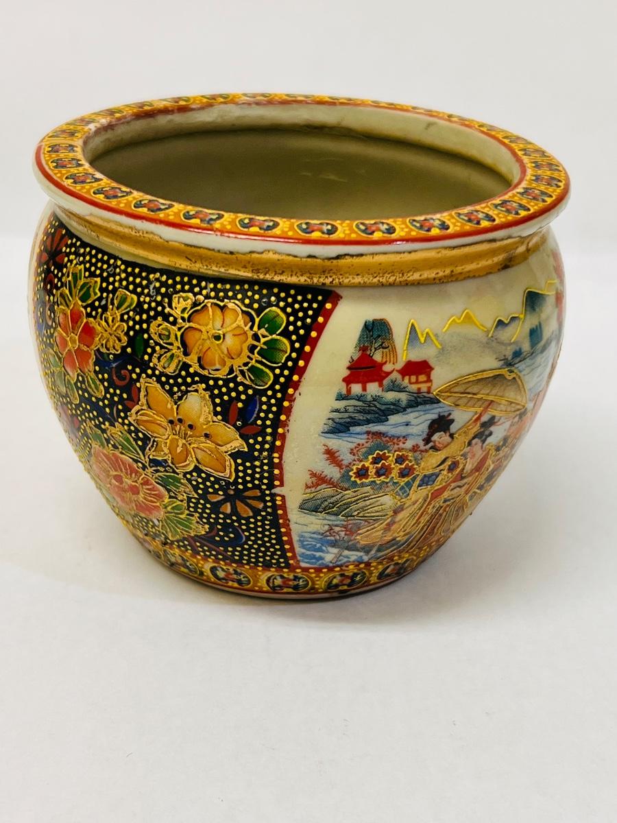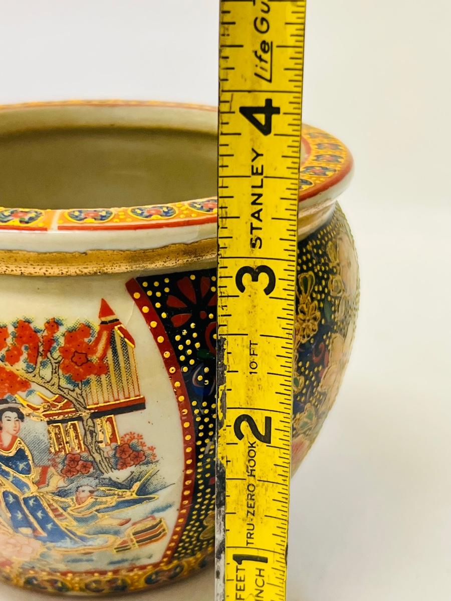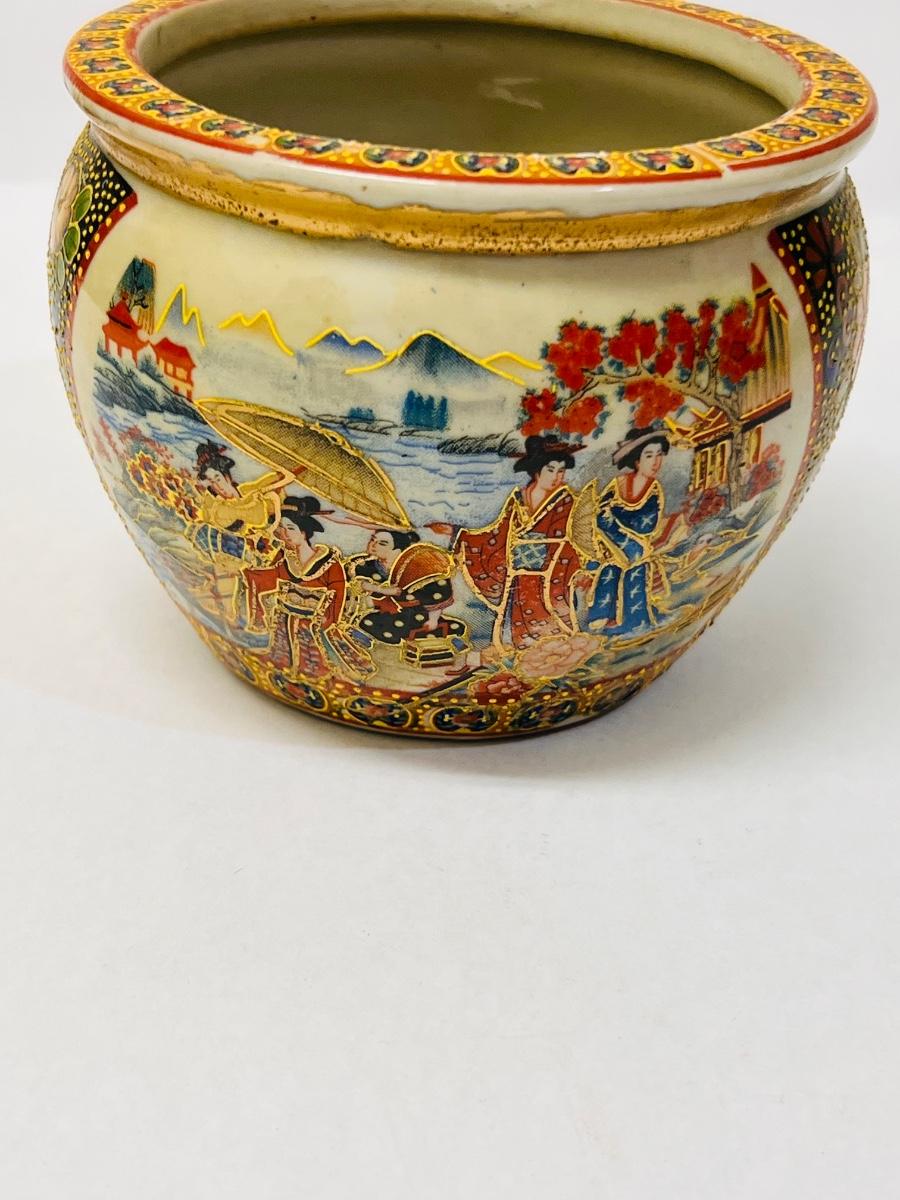 Vintage Japanese Geisha Fishbowl Planter with Gold Trim