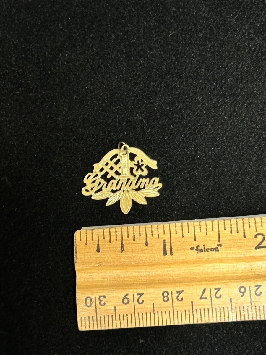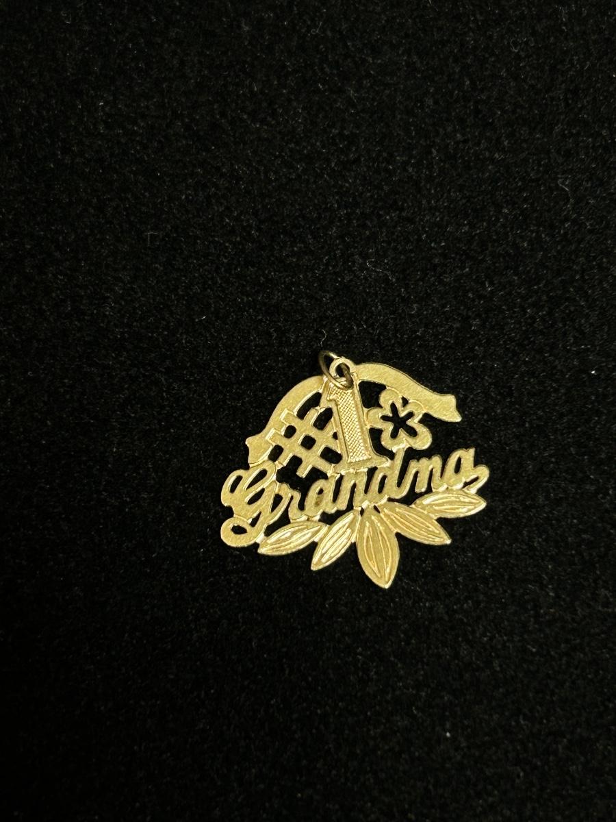 14k Yellow Gold #1 Grandma Pendant Charm. In good condition. Marked 14k on back. About 1" size.