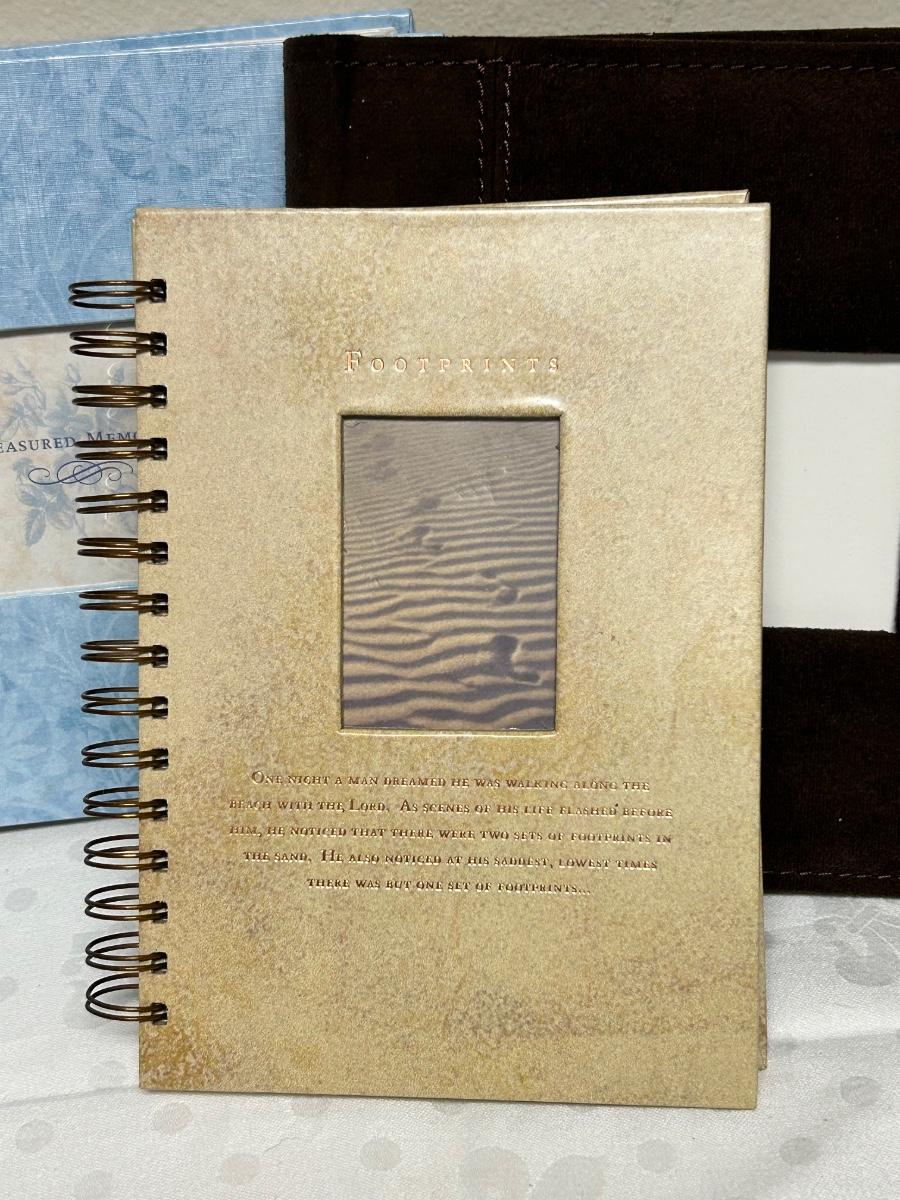 Footprints Spiritual Writing Journal & Two 9" Photo Albums. All items look unused. No writing in the journal.