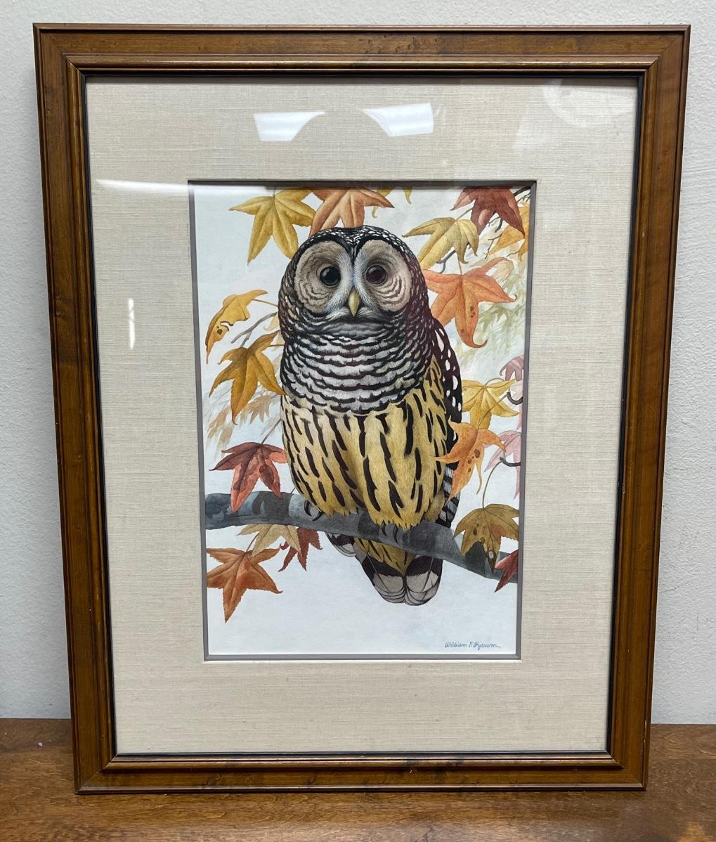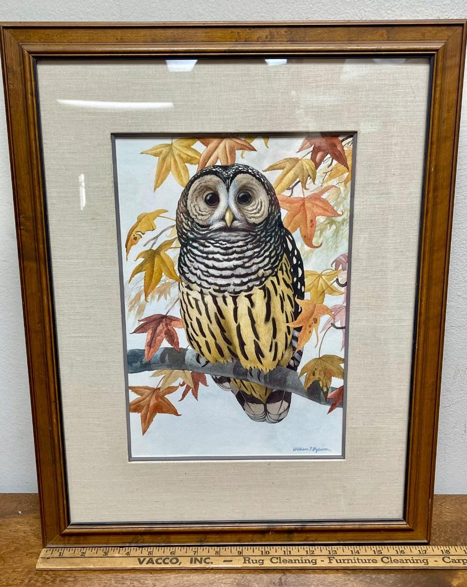 Framed Art Owl in tree by William F Pyburn 17 x 22 inches