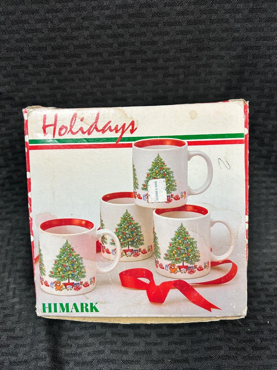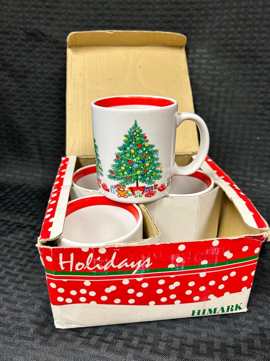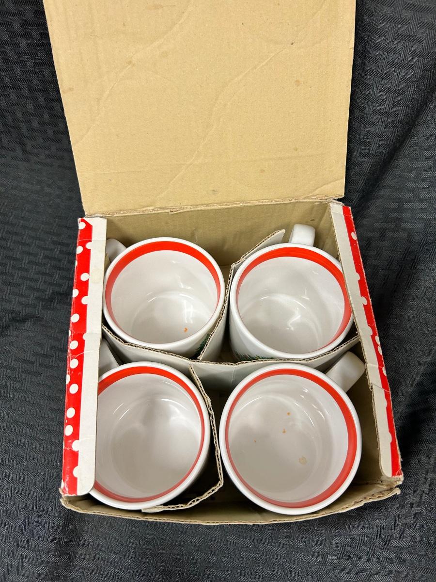 Set of 4 Retro Christmas Coffee Cup Cocoa Mugs. In original boxes. In good used condition.