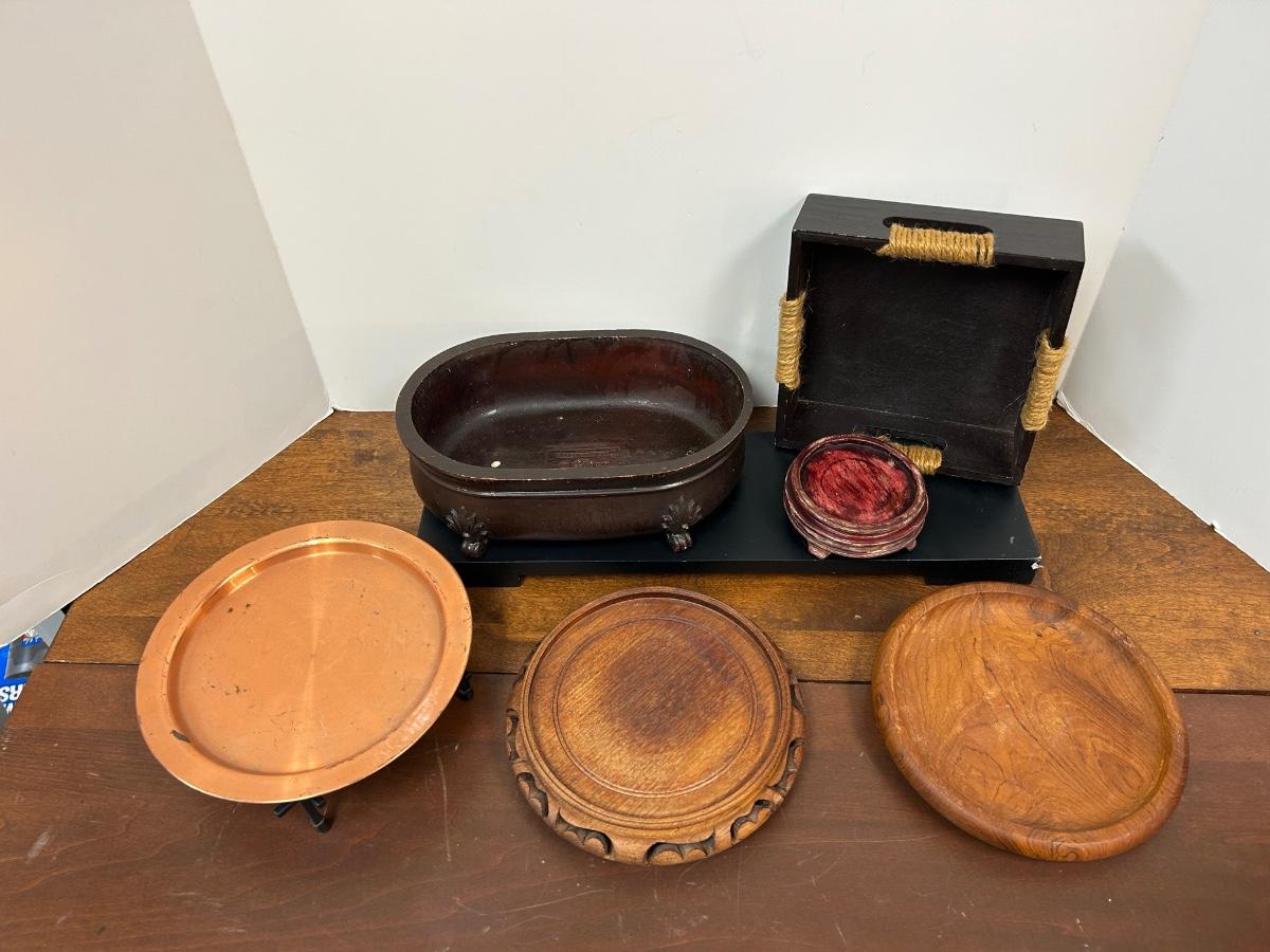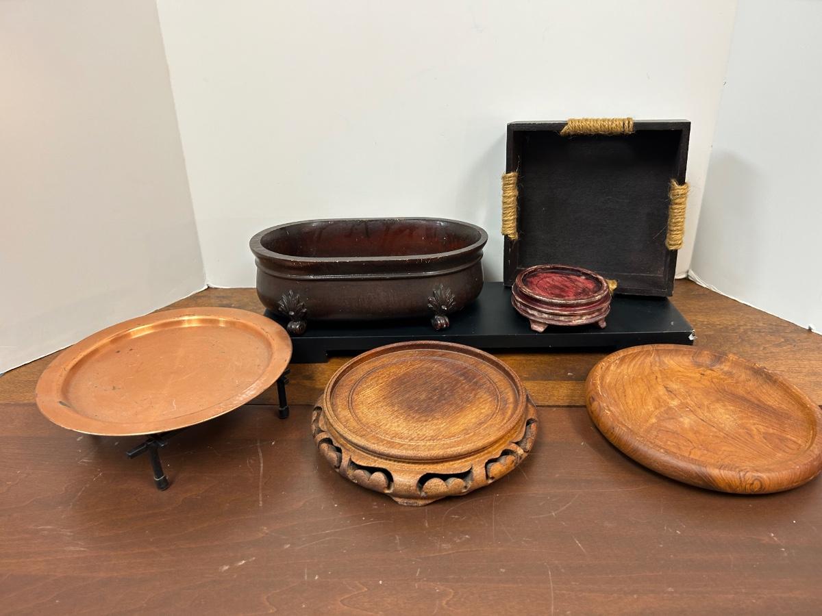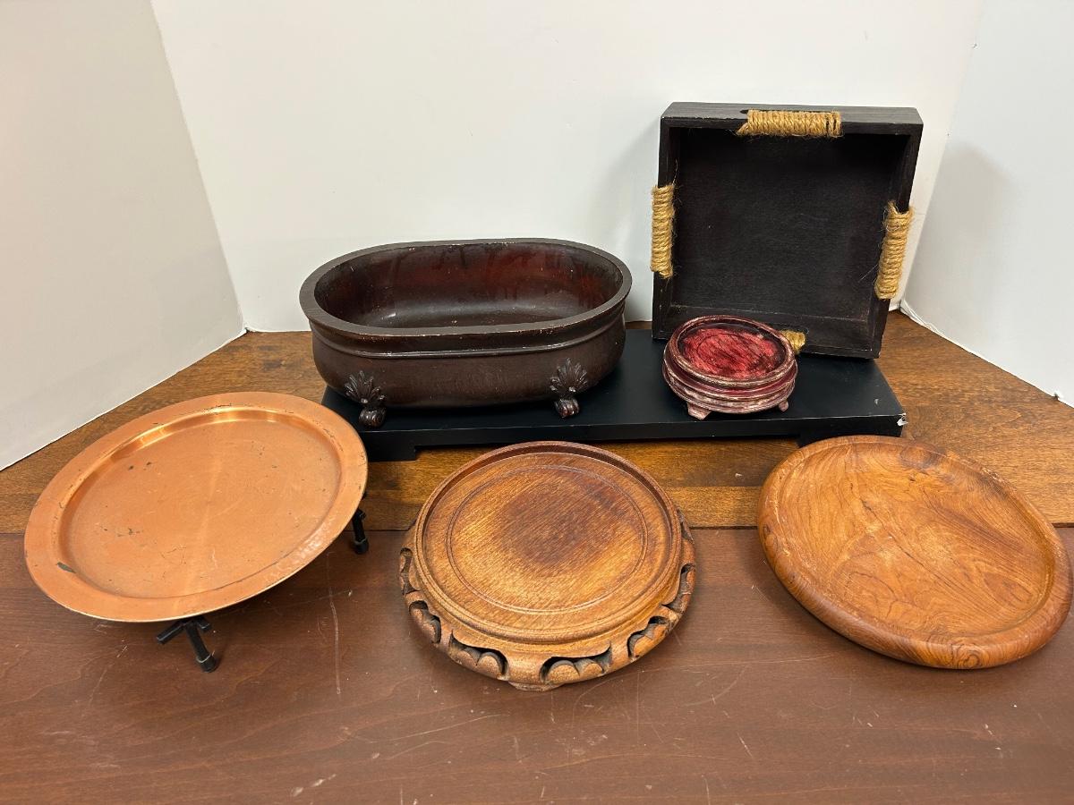 Mixed Lot of Wood Display Planter Pot Stands and Bases. Great for under figurines, vases or planter pots.