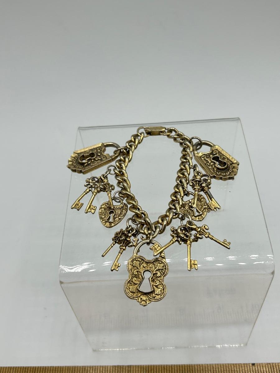 Vintage Retro Gold Tone Lock and Key Charm Bracelet. In good condition. Unbranded.