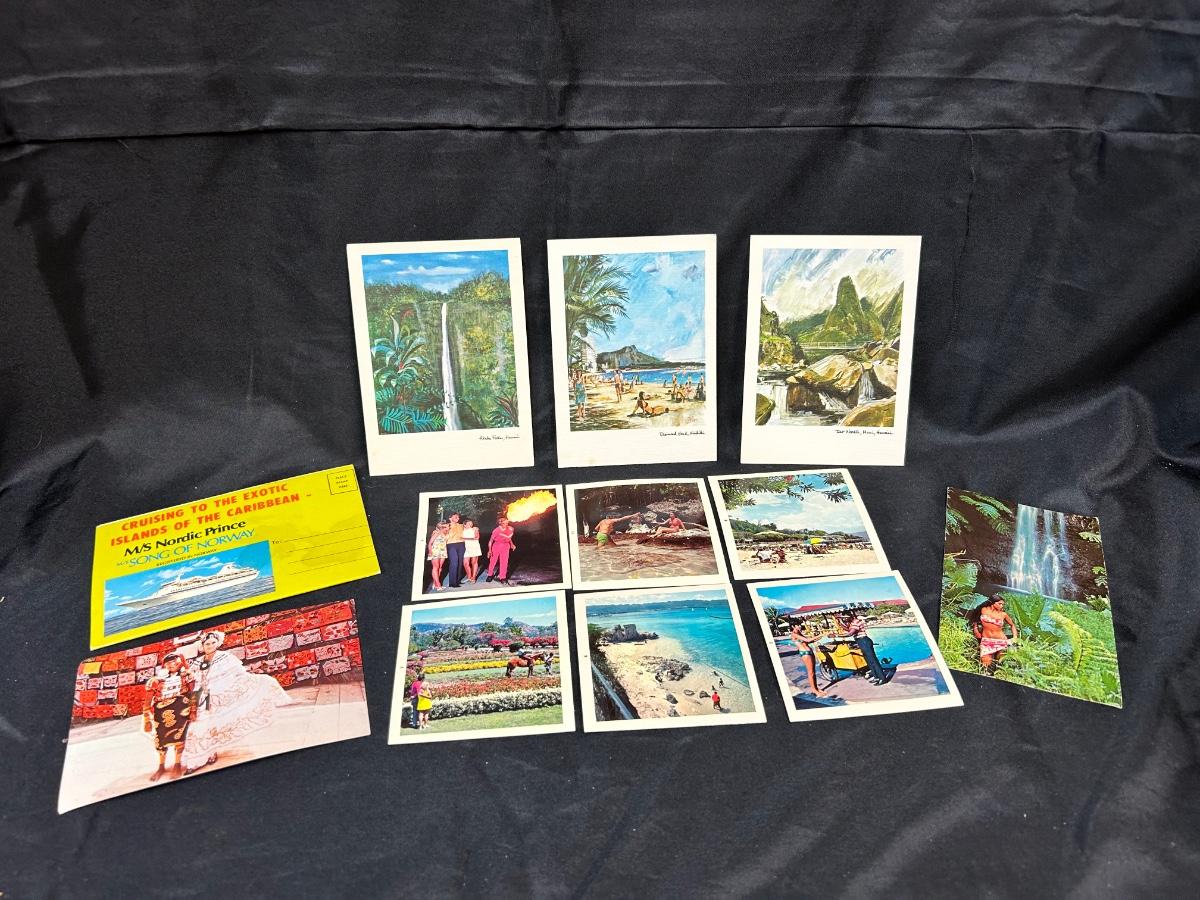 Vintage Vacation Postcard Photo Souvenirs Hawaii Caribbean. Some with writing on them. All in good vintage condition.