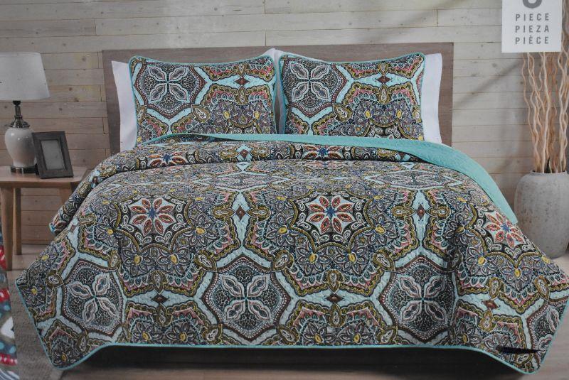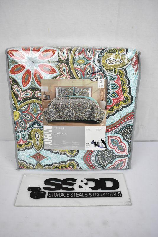 VCNY Home Multi-Color Yara 3 Piece Pinsonic Bedding Quilt Set, Shams Included, $30 Retail - New