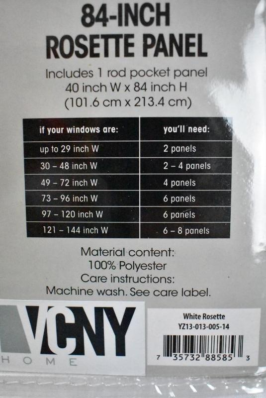 VCNY Rosette Panels Qty 2, Rod Pocket Panel White, 40" x 84" Each - New