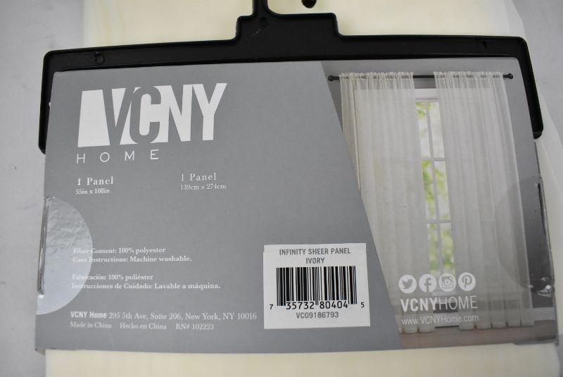 VCNY Home Infinity Sheer Rod Pocket Window Curtains, Qty 2, 55"x108" each, Ivory Color - New