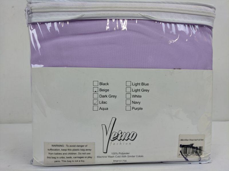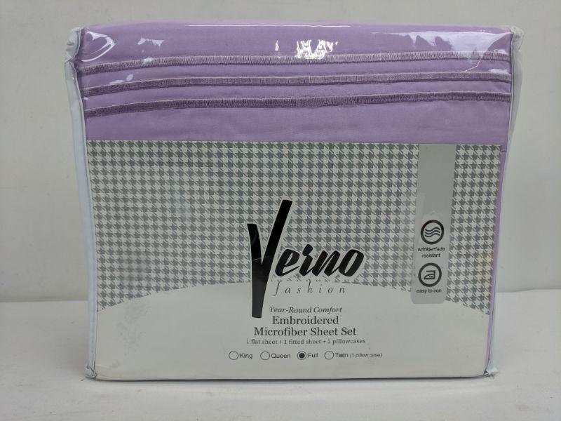 Veino Fashion Embroidered Microfiber Sheet Set, Lilac, Full - New