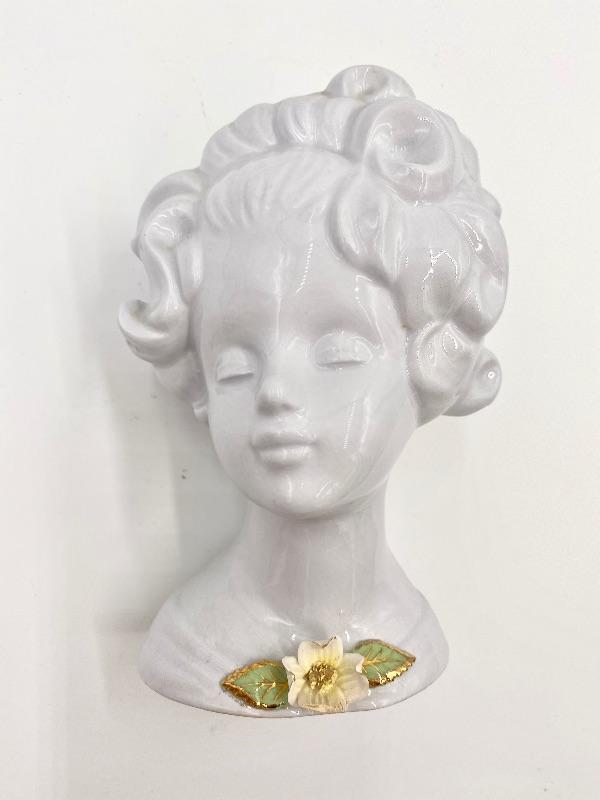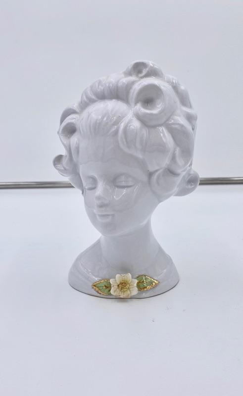 Ceramic bust is 7 1/2 inches tall with minor cracks and discoloring