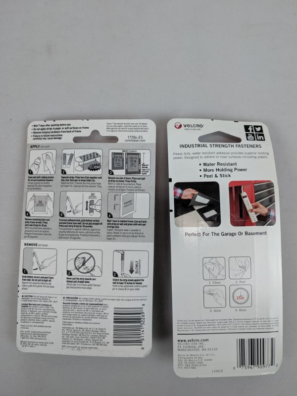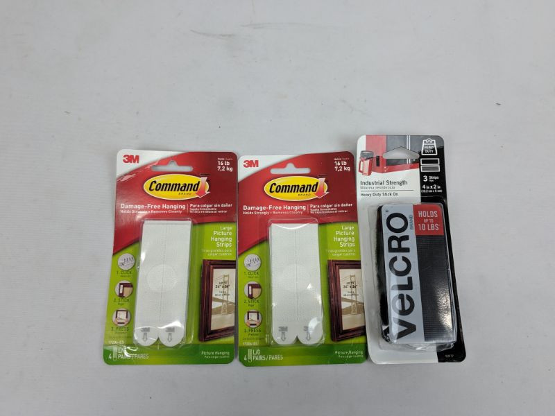 Velcro Heavy Duty 3 Strips 4" x 2" & 2 Command Damage Free Hanging Strips - New
