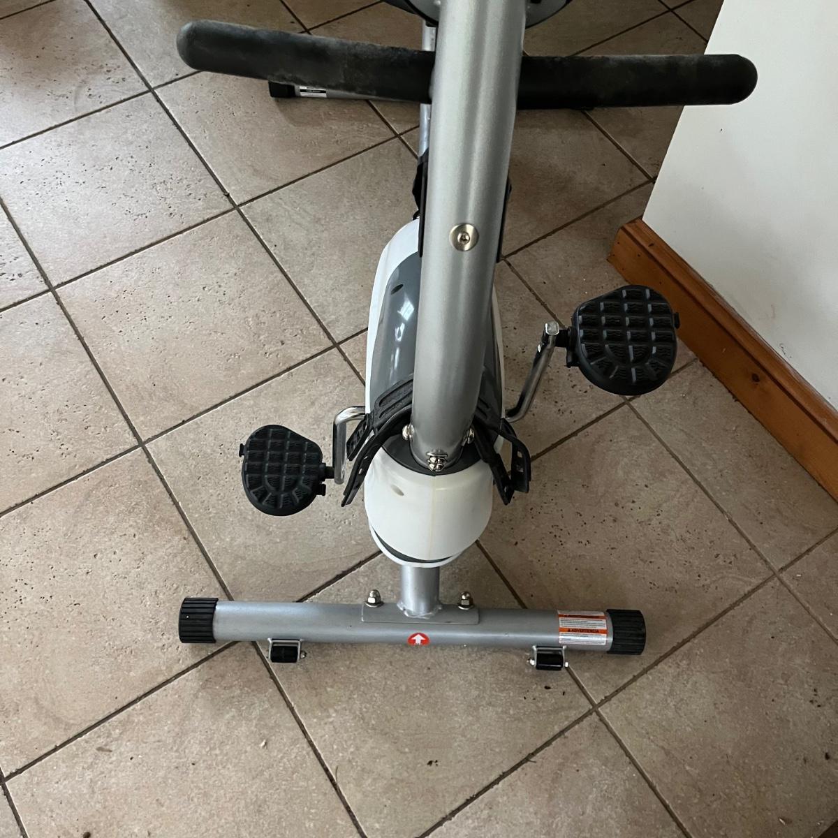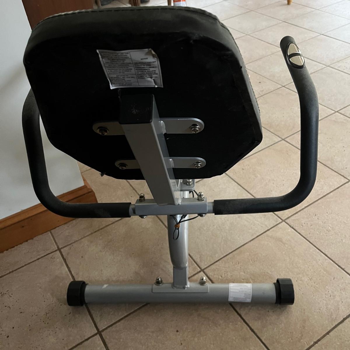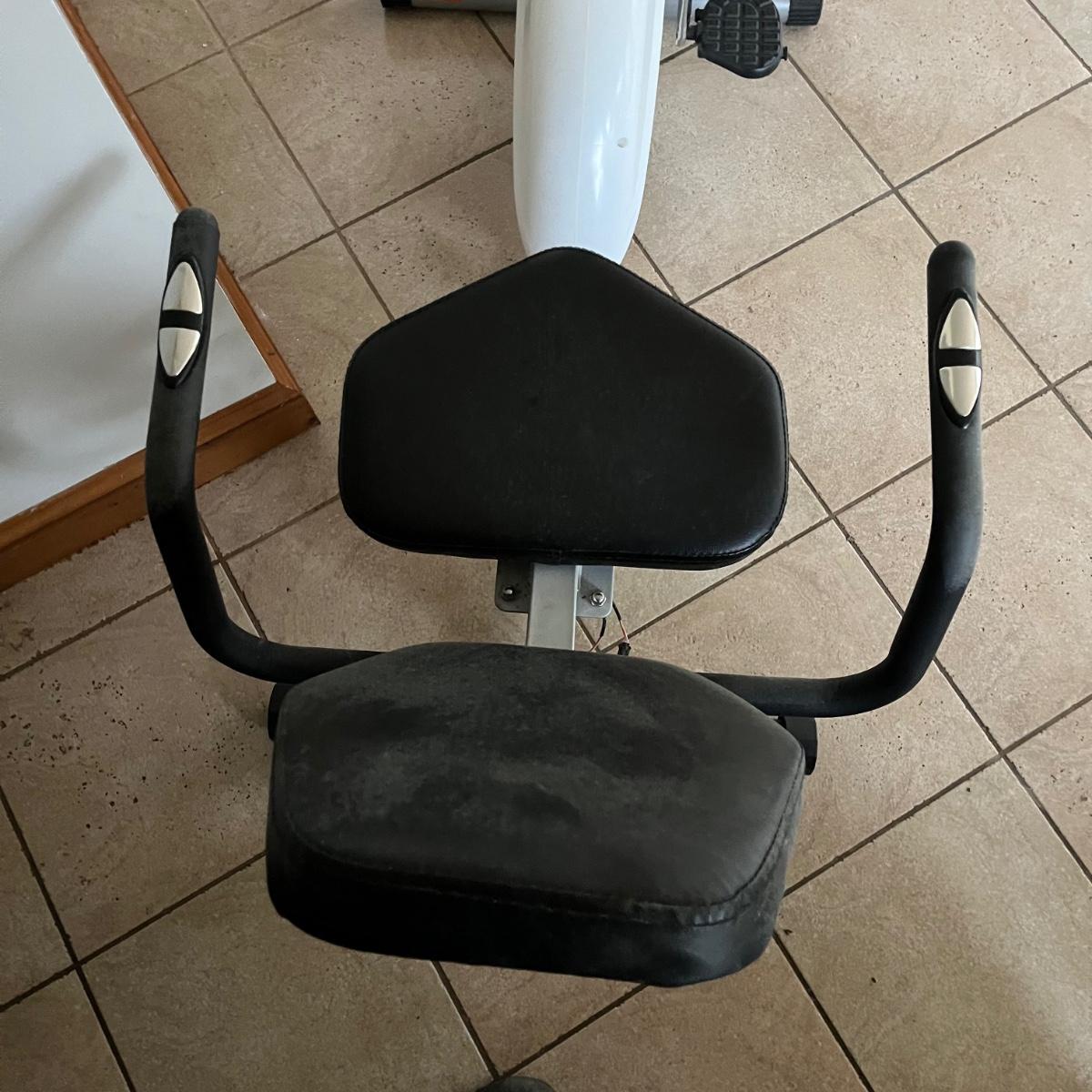 This exercise machine is a Velocity recumbent Sport exercise bicycle. Display appears to need new battery. Bicycle measures 23.5” x 48” x 37”.