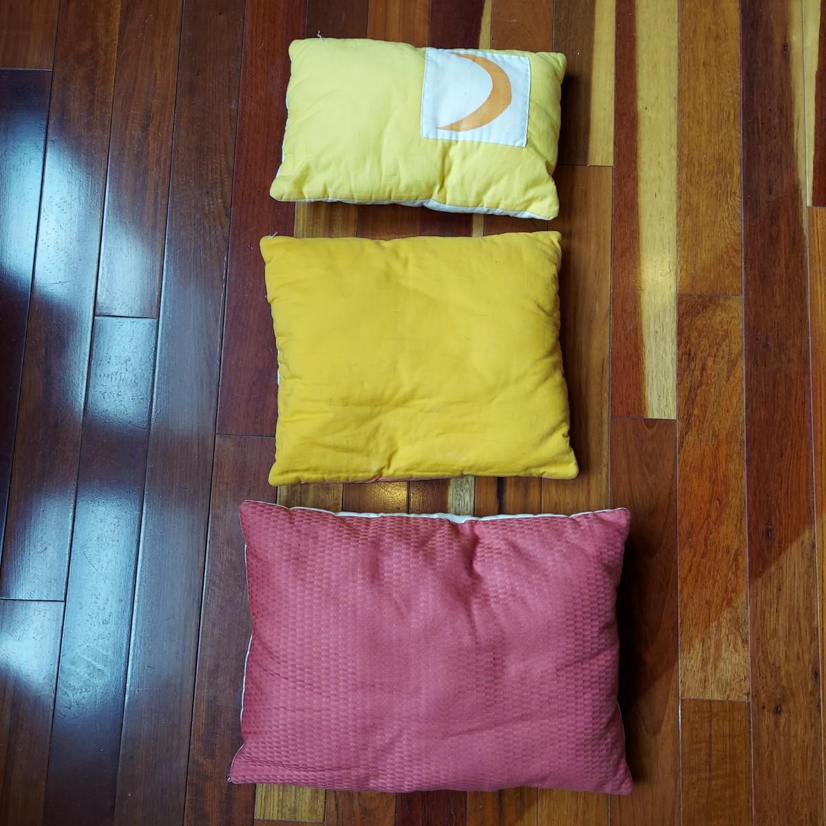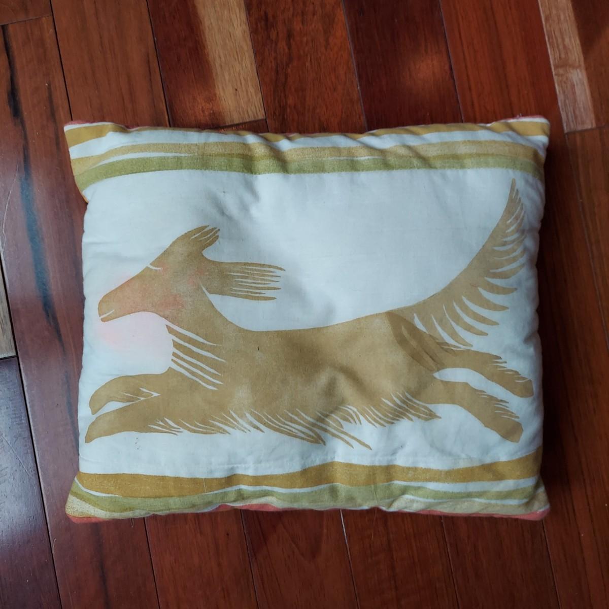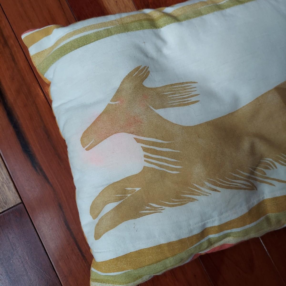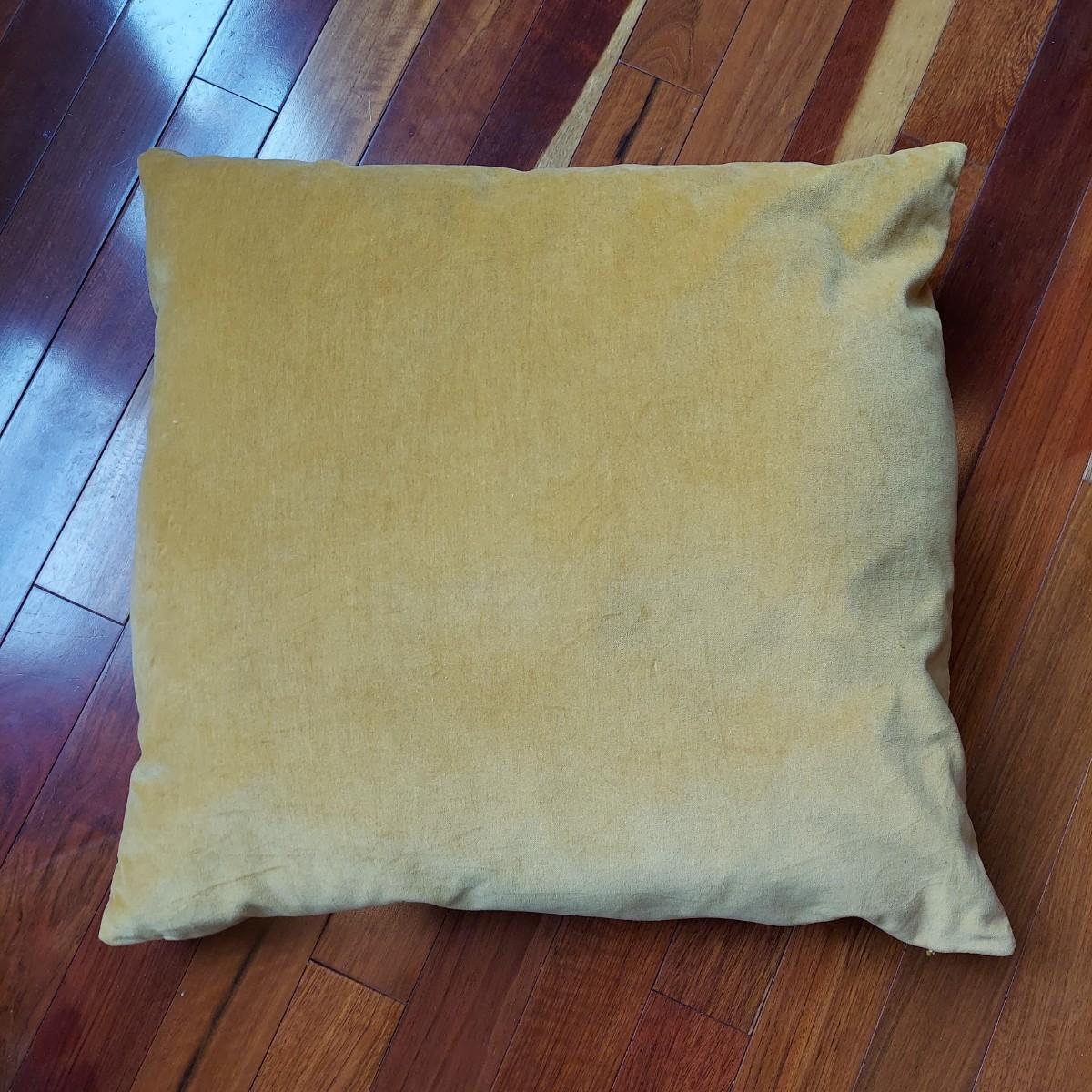 Five throw pillows in shades of rust and gold. The large gold velour pillow is 22 x 24". The medium sized rust coloted micro fiber pillow is 17 x 18". The small printed pillows are various sizes 12-16" long. The small pillows need cleaned. Please see photos. These items are from a pet owned home. Shipping available. Shipping certain items can be costly. We suggest contacting our preferred local shipping provider, Postage Express, with dimensions and getting an estimate before bidding: (828) 670-5501 or postageexpress@yahoo.com.