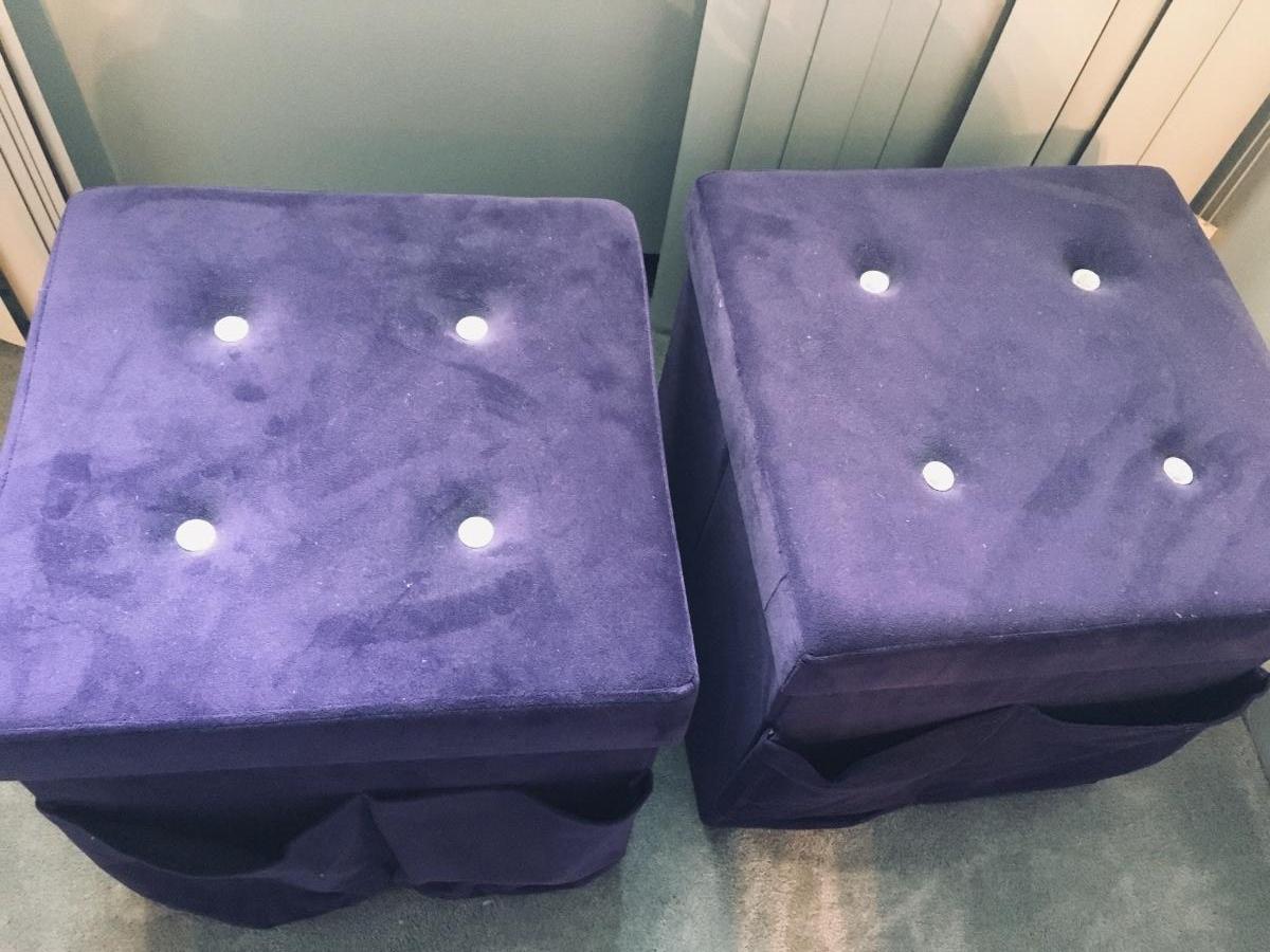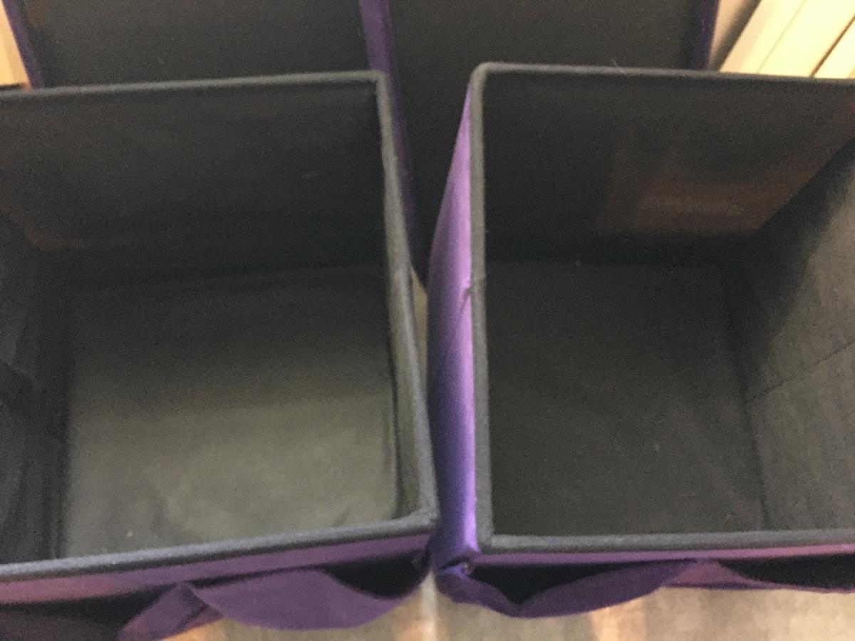 Pair of storage cubes, foldable, removable lids with rhinestone 'buttons'. Clean.