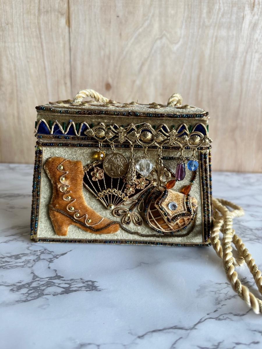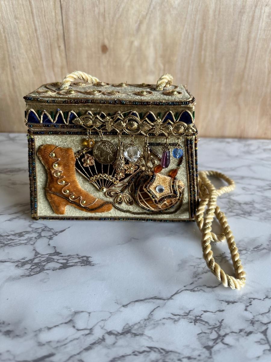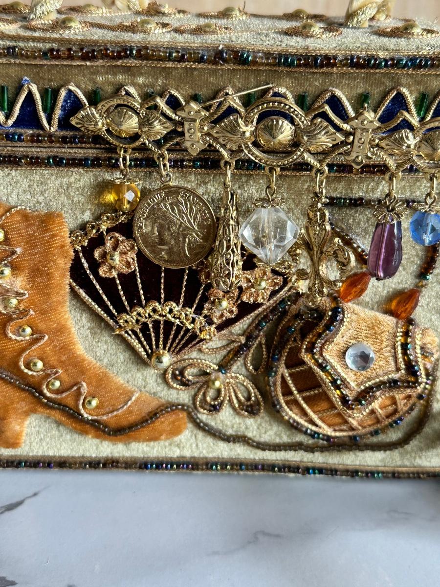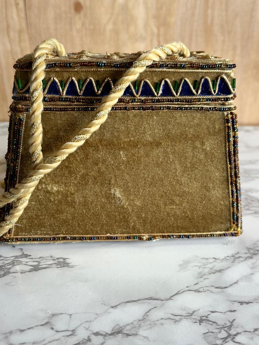 VELVET and EMBROIDERED PURSE with crossbody handle,Embroidered Purse with gold thread and glass beads