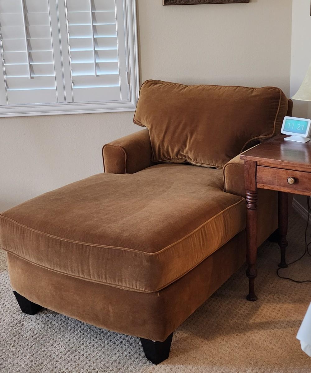 Velvet Chaise Lounge - Gold / Brown cotton velvet