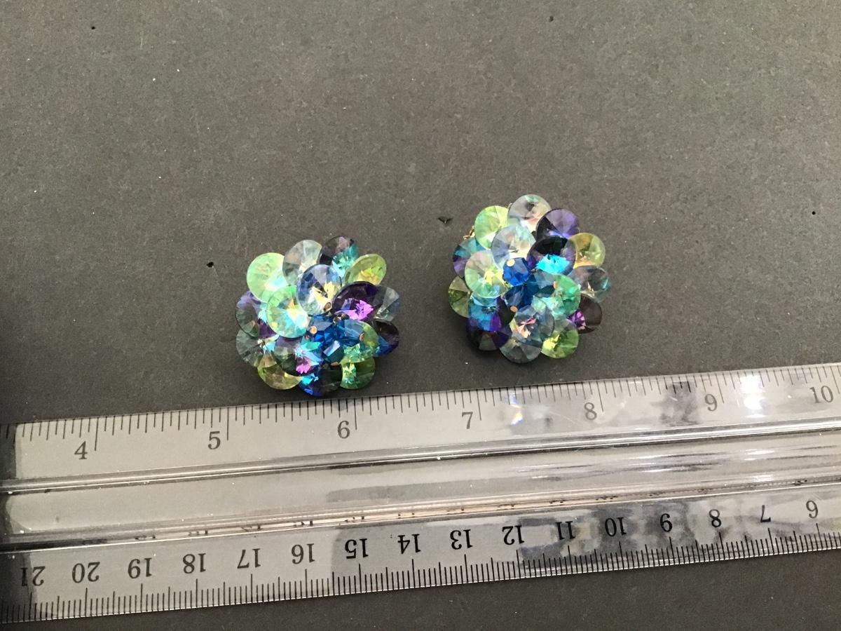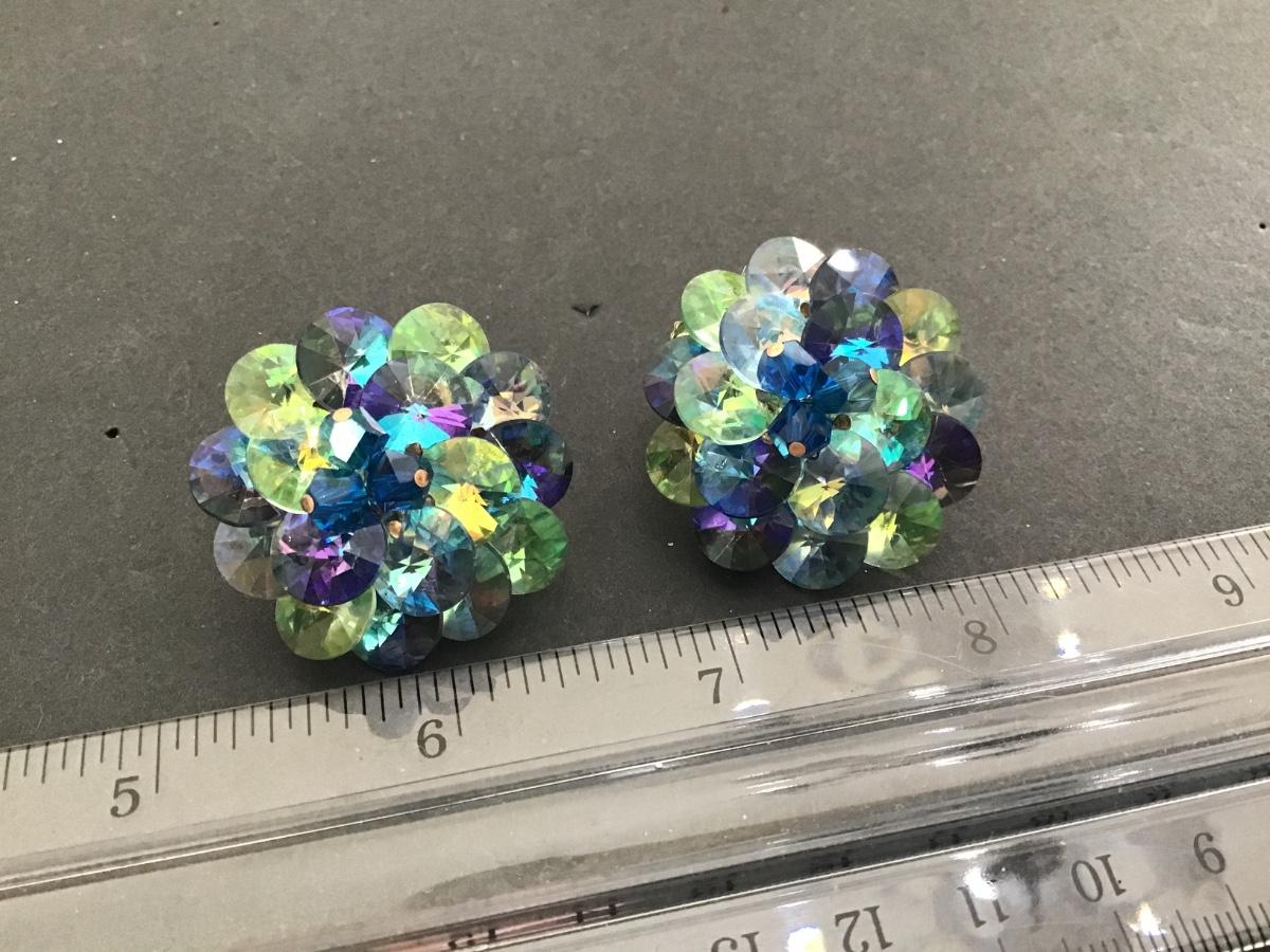 Vendome Rivoli Aurora Borealis Clip on Earrings