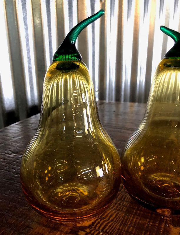 Here are two Venetian glass pears....Excellent condition...7" tall..Hand blown...