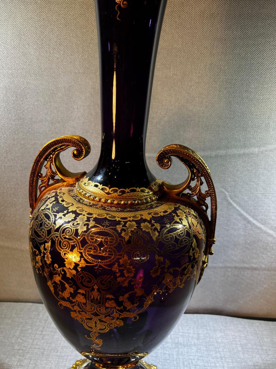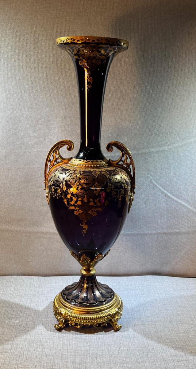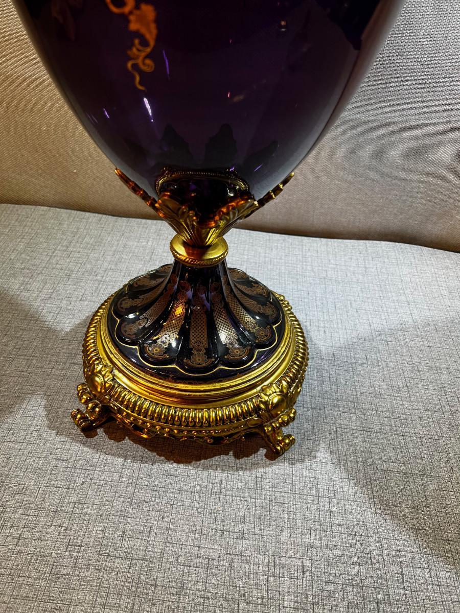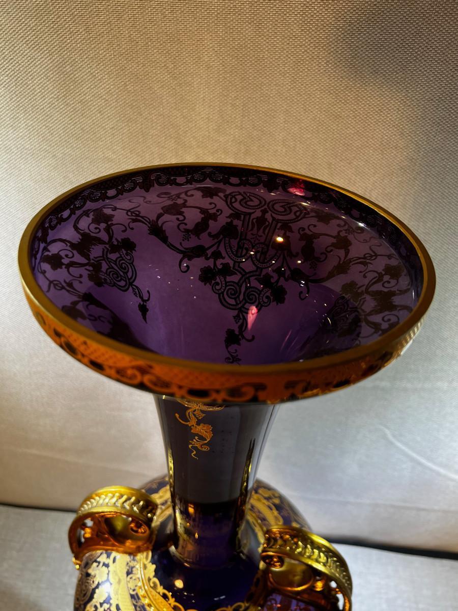 Venetian Gilded Ormolu Purple Jardinière Glass Vase LARGE!