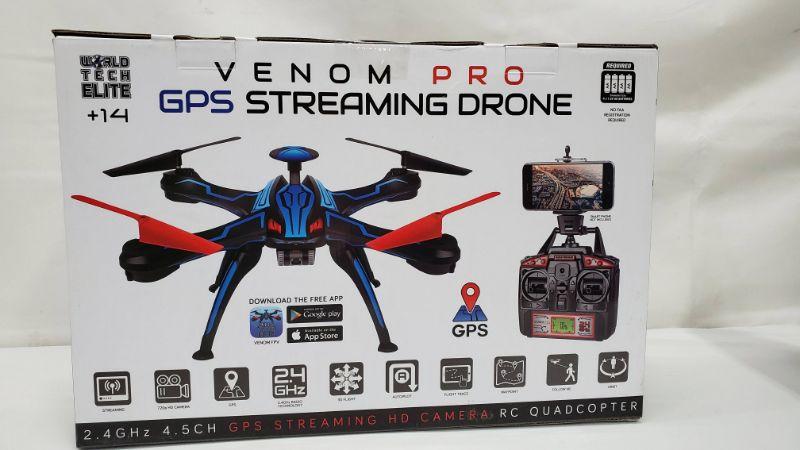 Venom Pro GPS Streaming Drone, World Tech Elite +14, Streaming HD Camera - New