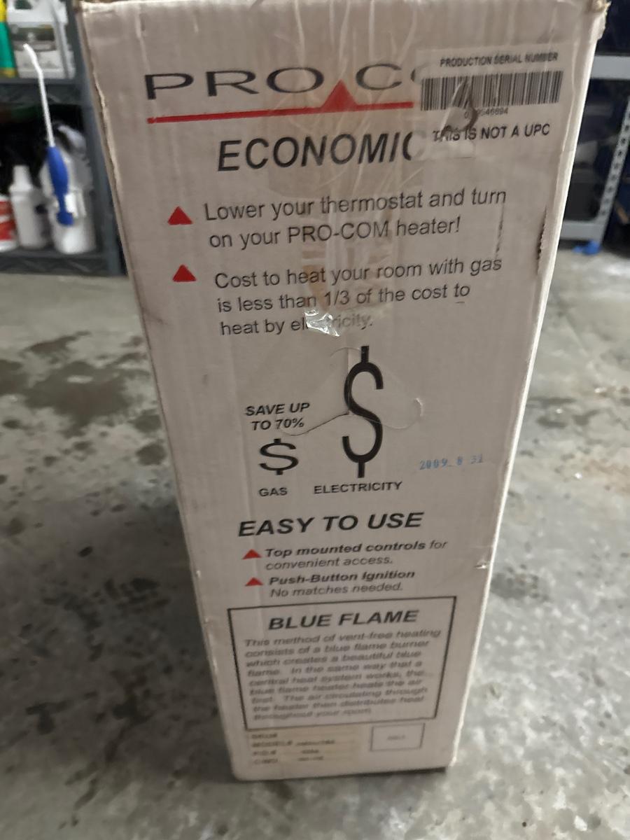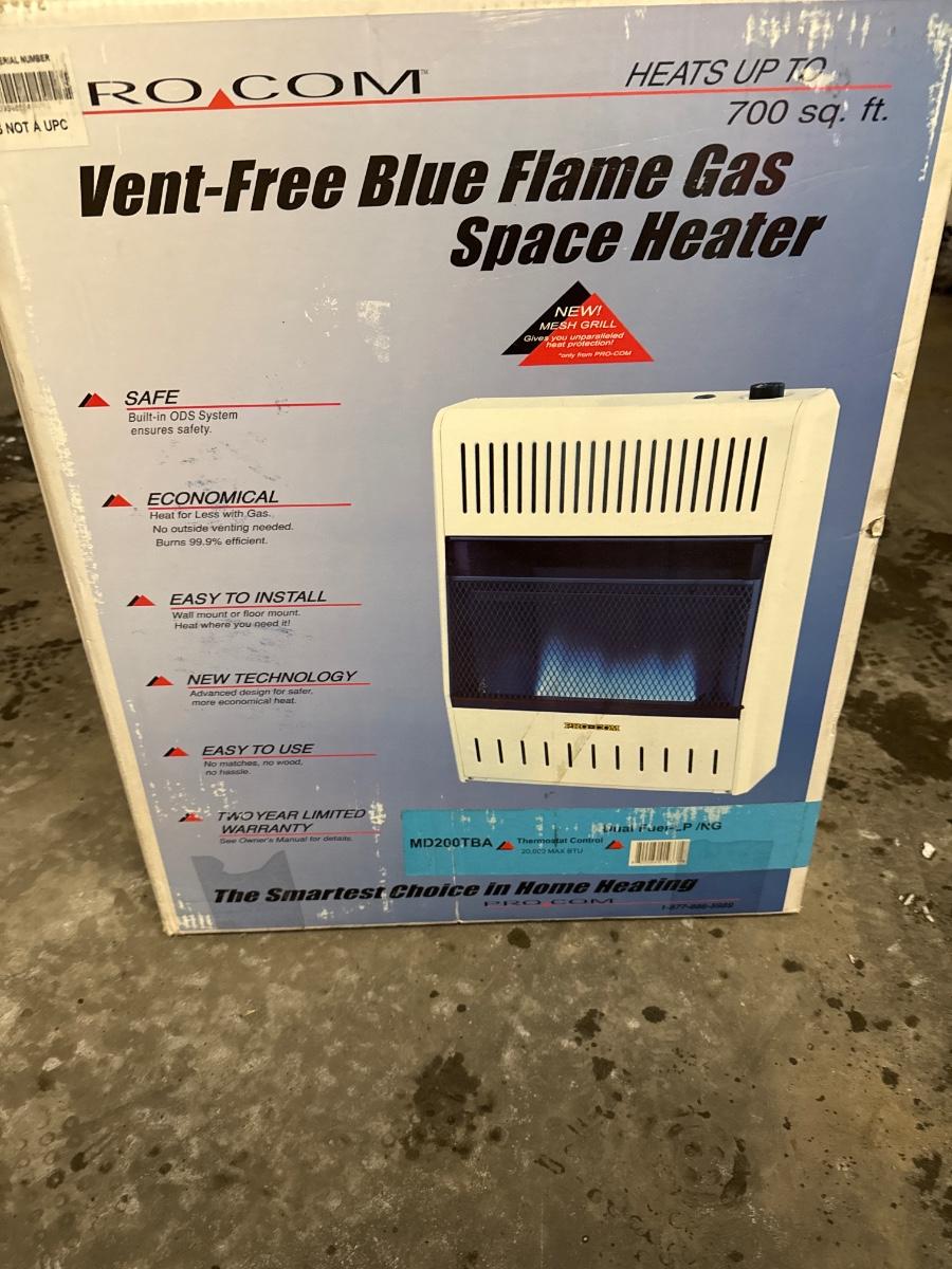 Vent free blue flame gas space heater