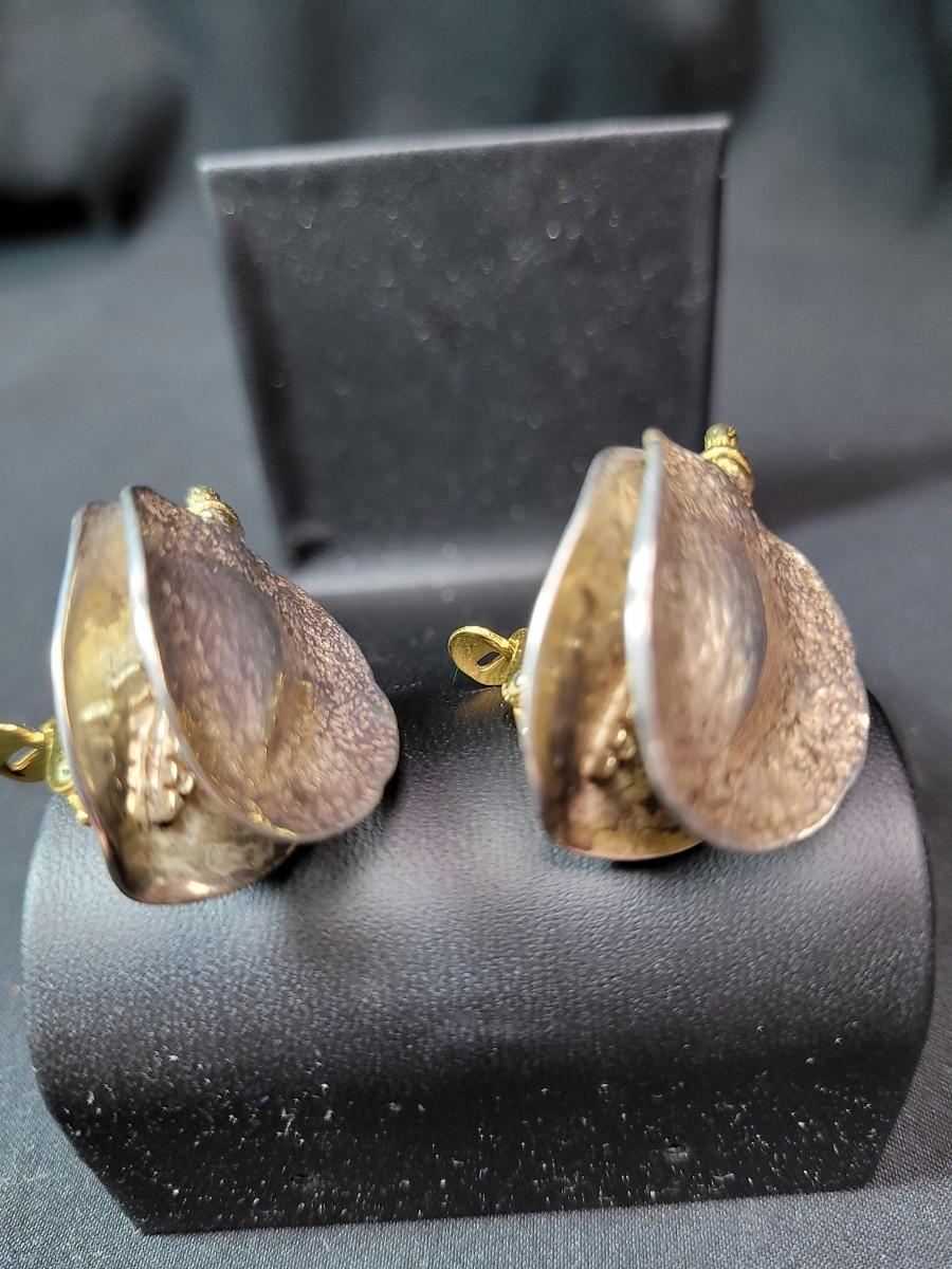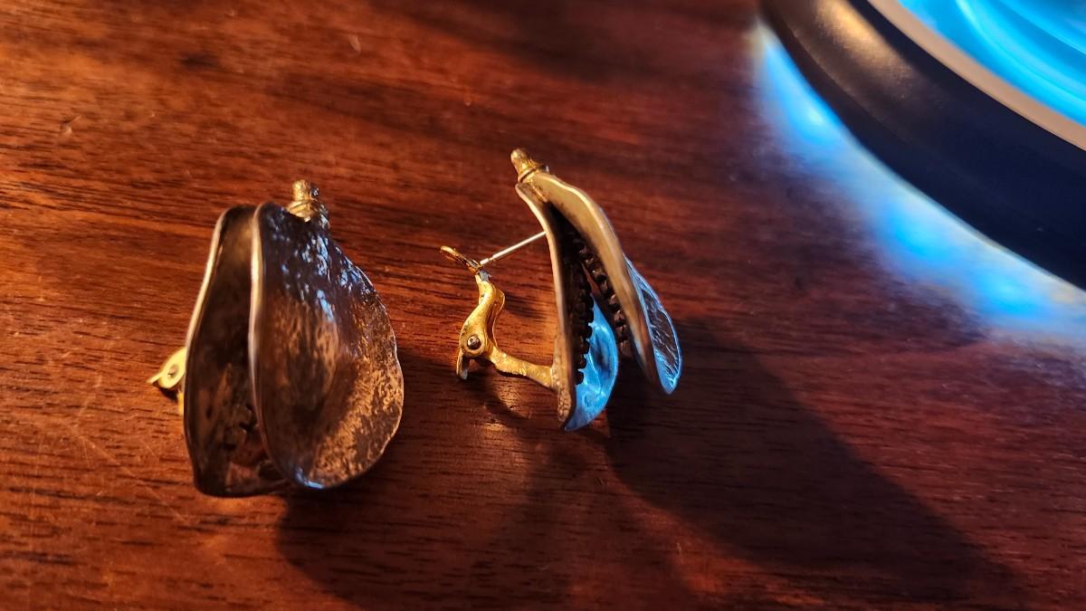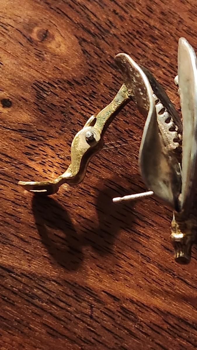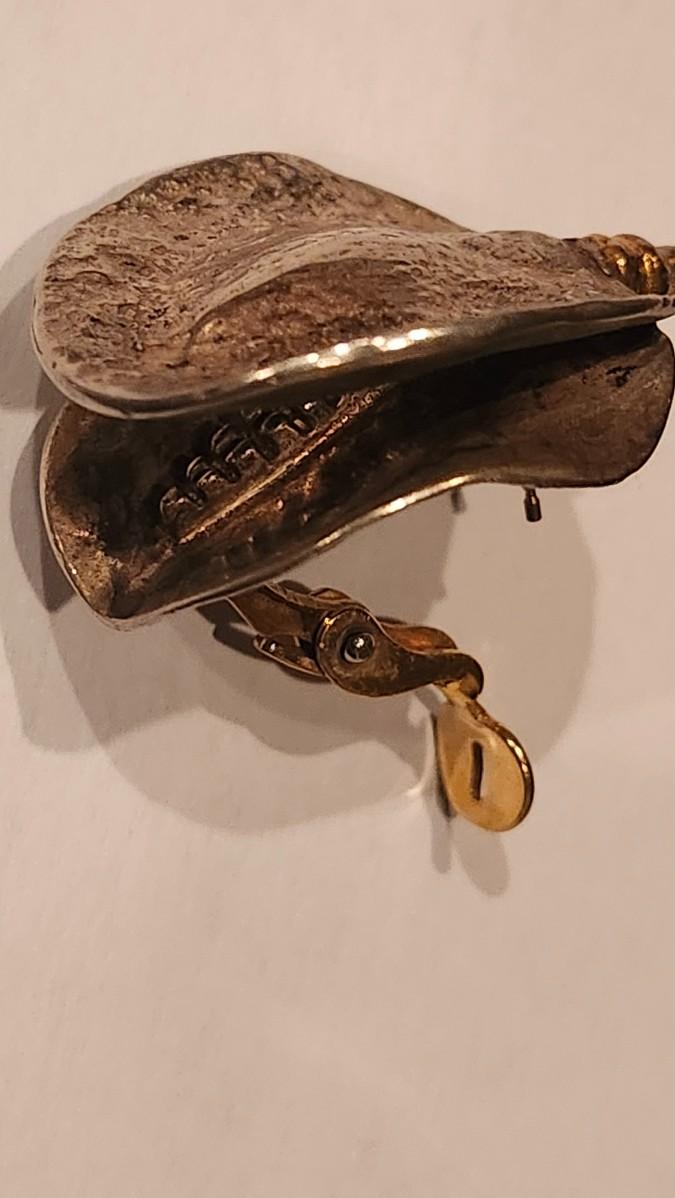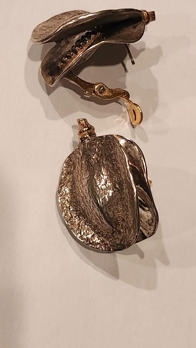 This may be the most unusual item we have offered to date. Custom designed, in sterling or oxidized silver with 14K gold (tested) pierced backing. ~ 1.25" x 1"