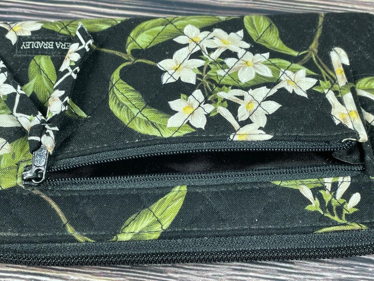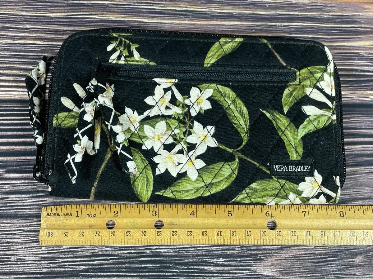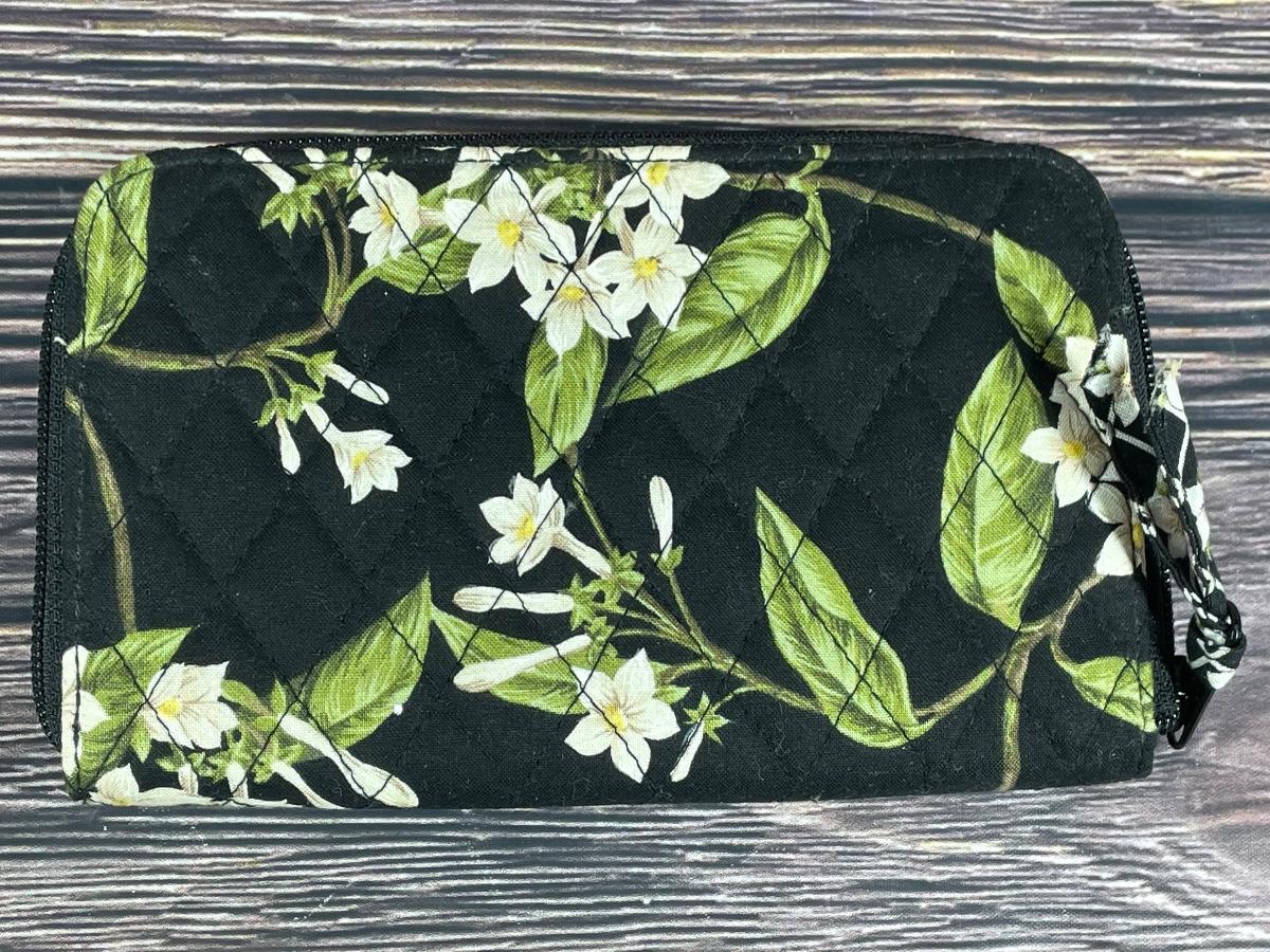 Vera Bradley Jasmine Flower Black Floral Quilted Zipper Wallet