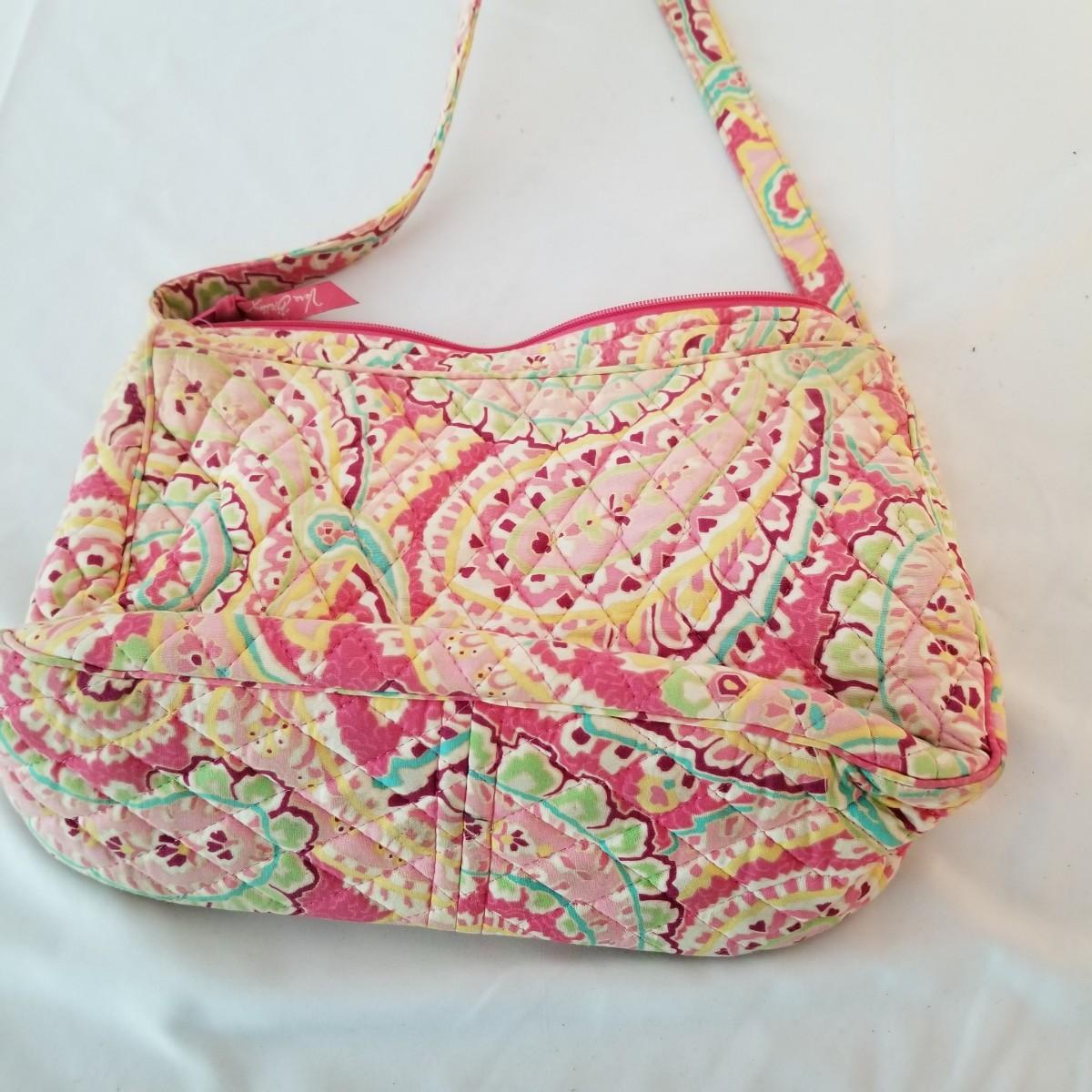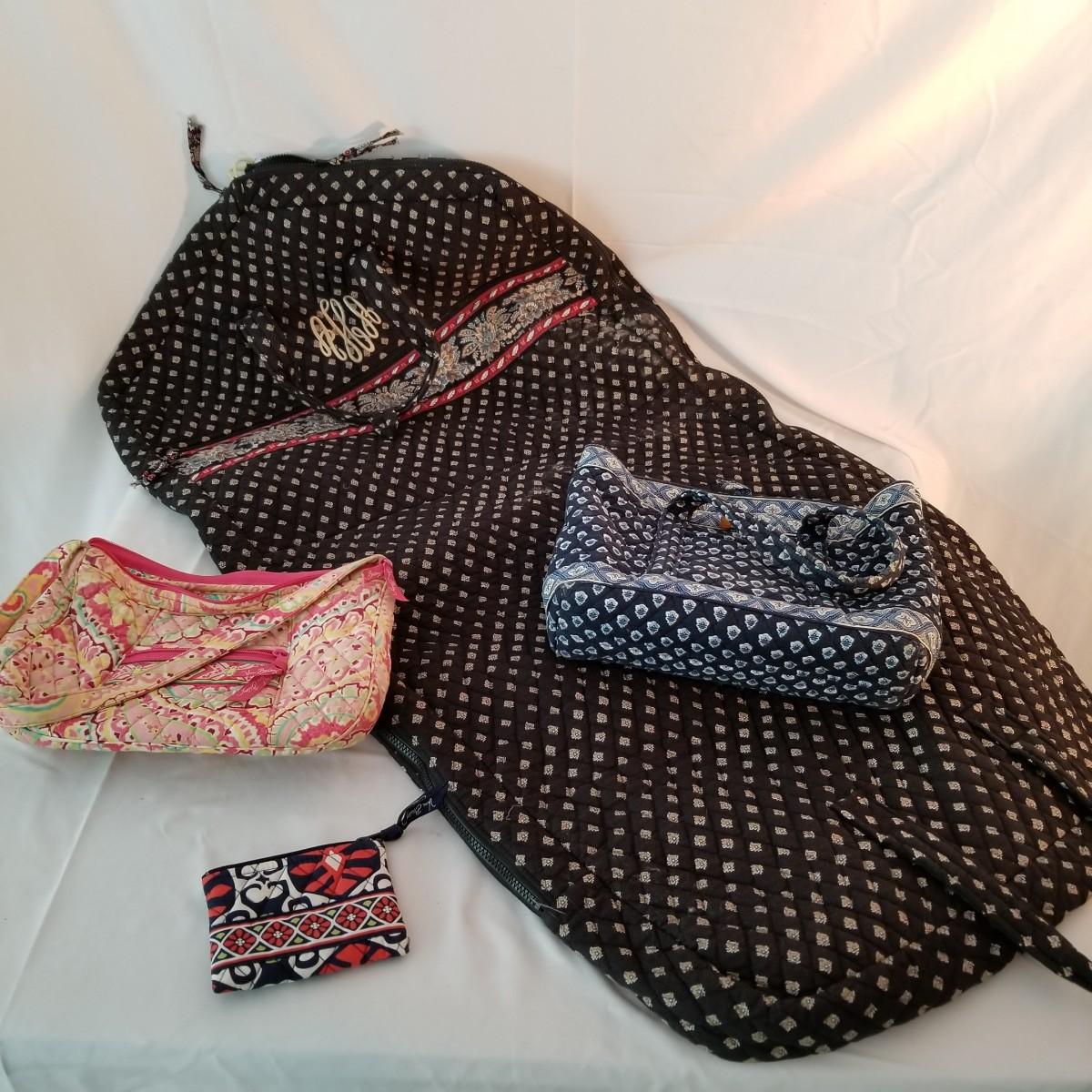 Four pieces of Vera Bradley. One garment bag, two purses and a small pouch. All items tagged, see photos.  Garment bag is 48"x24".  Blue purse 14"x10", pink purse 13"x9", small pouch 4"x5". Shipping available.