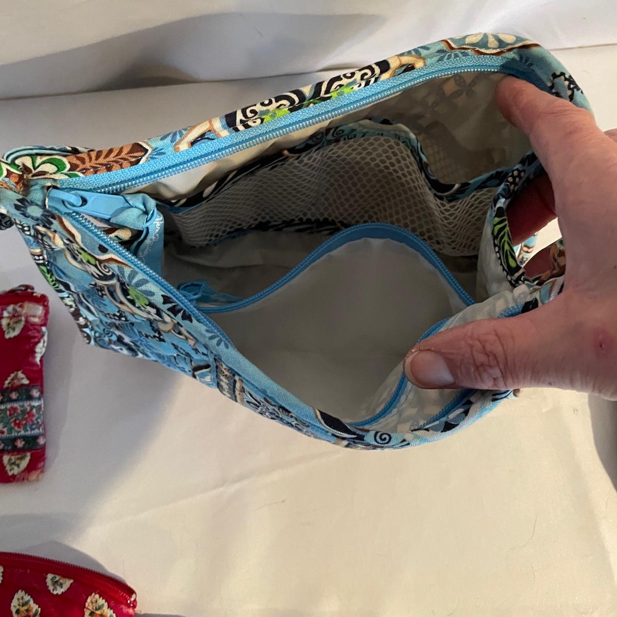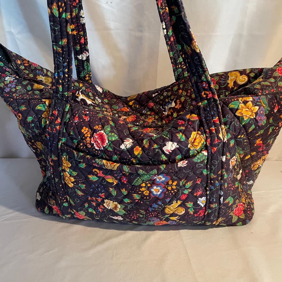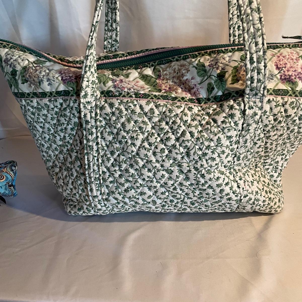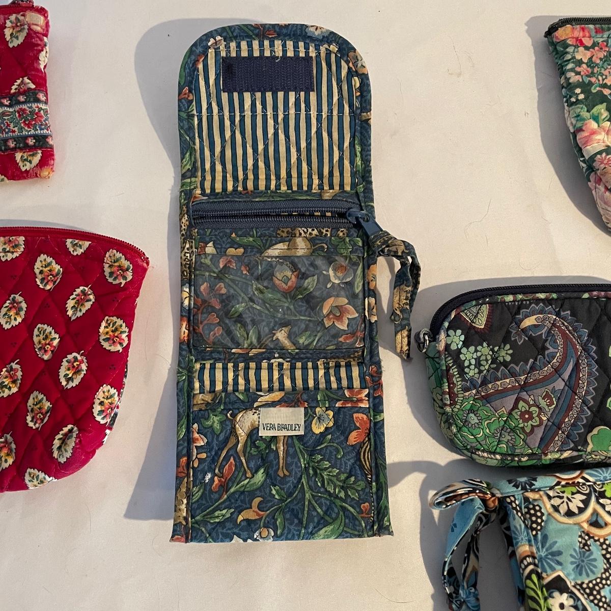 Two large totes, one shoulder bag, a hat, toiletry bag and a handful of smaller pouches make up this Vera Bradley lot. All items are in good condition.