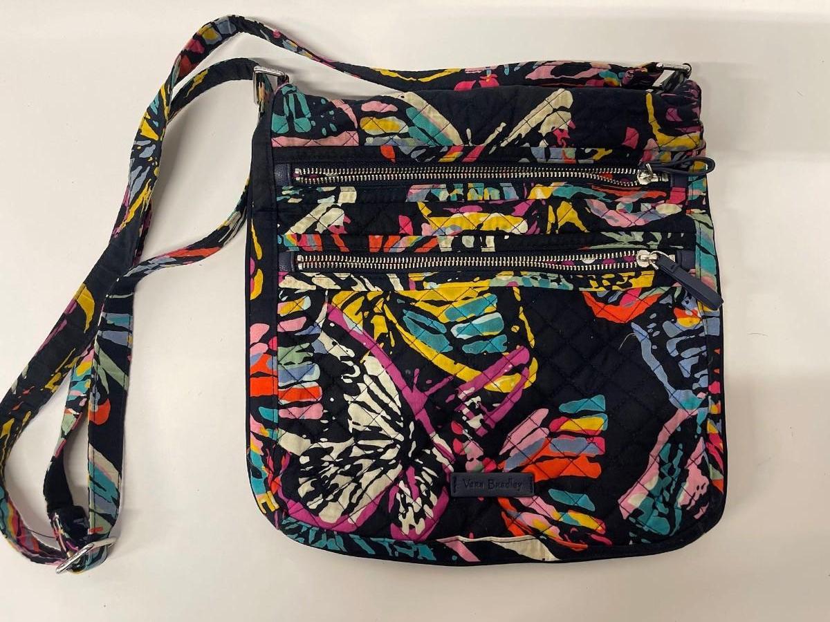 Vera Bradley Quilted Butterfly Cross Body Bag. Shows some wear.