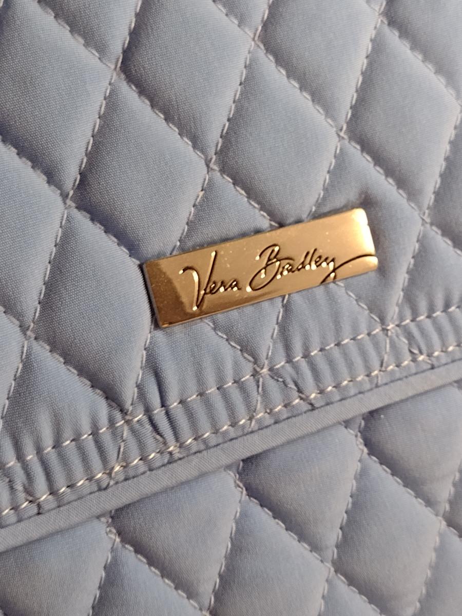 Vera Bradley Quilted Sky Blue Shoulder Bag with ID Case and Cosmetic Bag. Item appears to be in good condition.