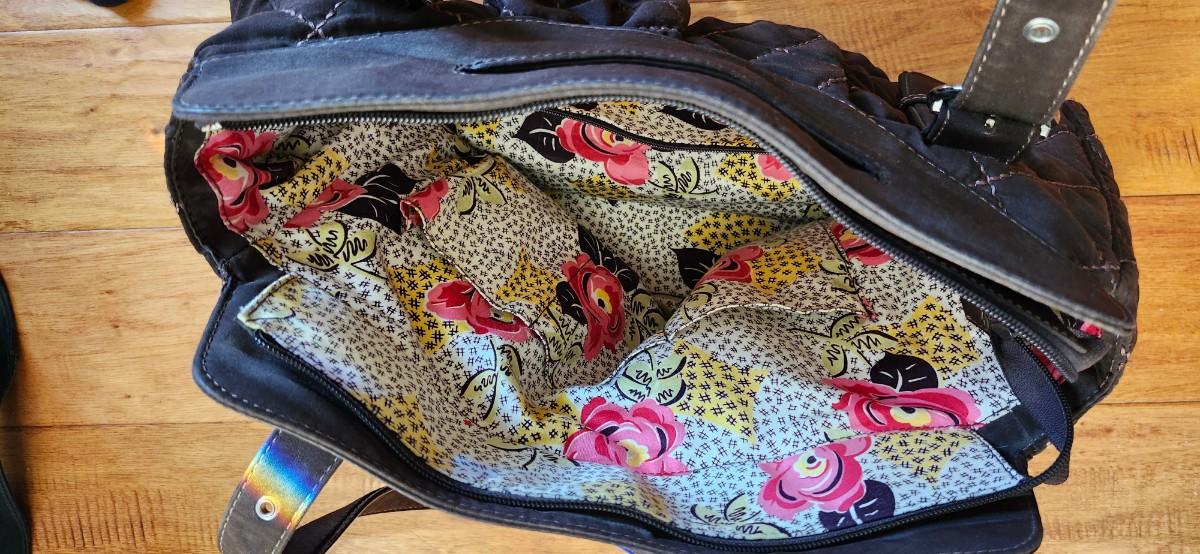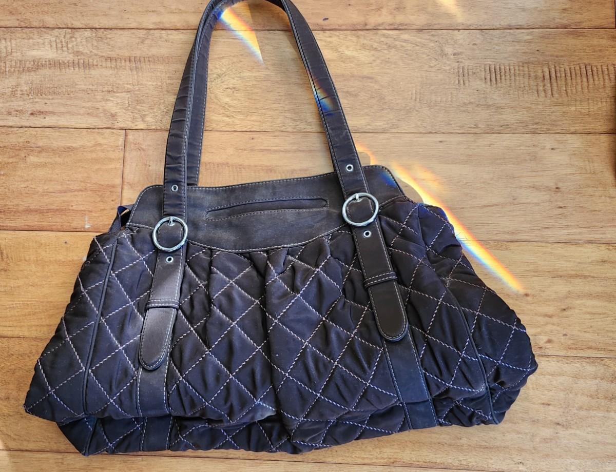 Espresso brown microfiber quilted shoulder bag, tote, overnite bag.