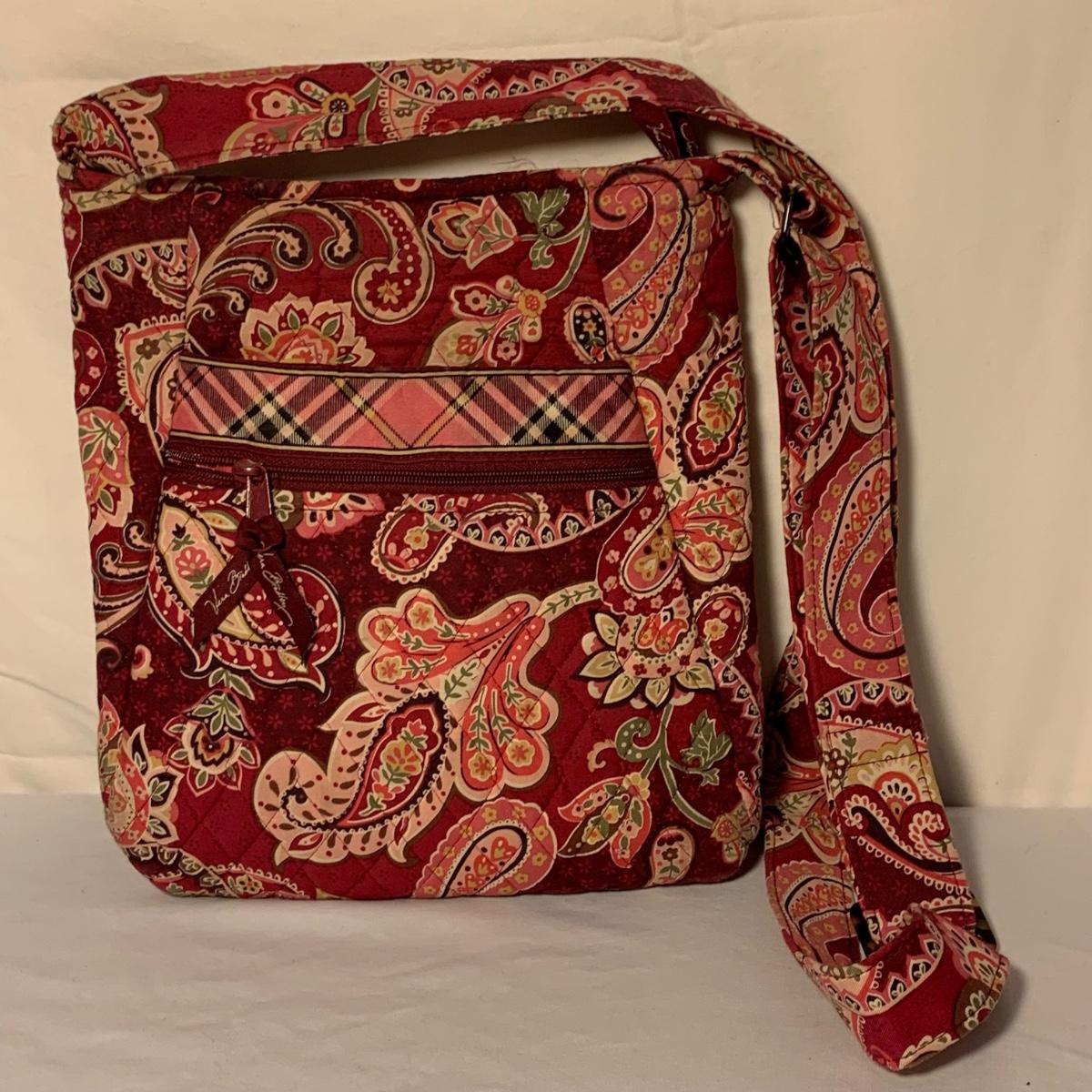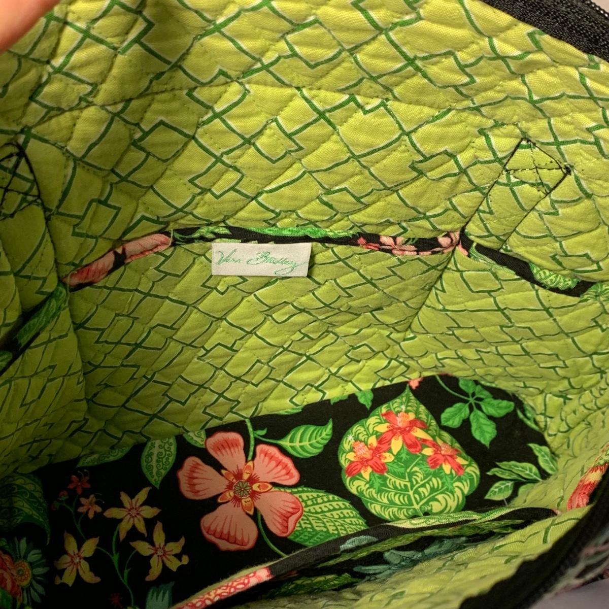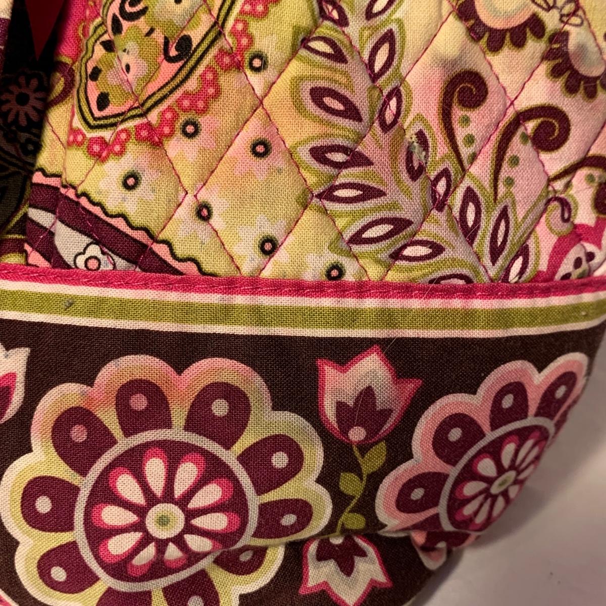 A collection of 12 bags including tote bags, hand bags, and a duffel bag. Eight of the bags are Vera Bradley. The largest item is the red bag with green paisley top border; it measures 18” x 5” x 17”H (not including the handle). Some wear; see photos.