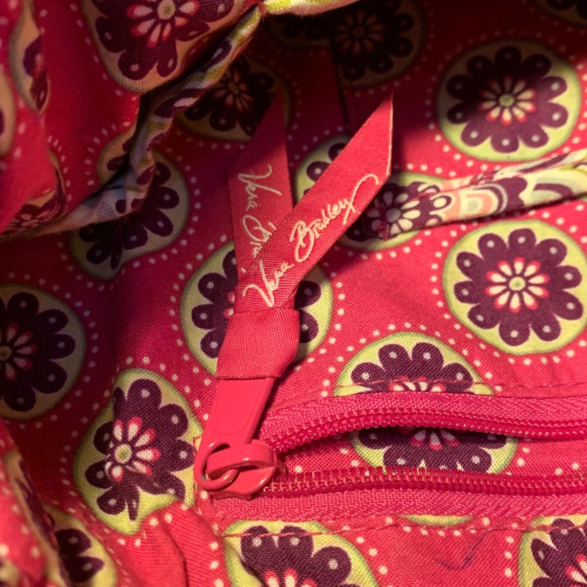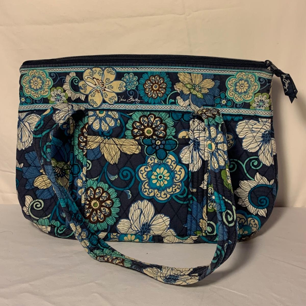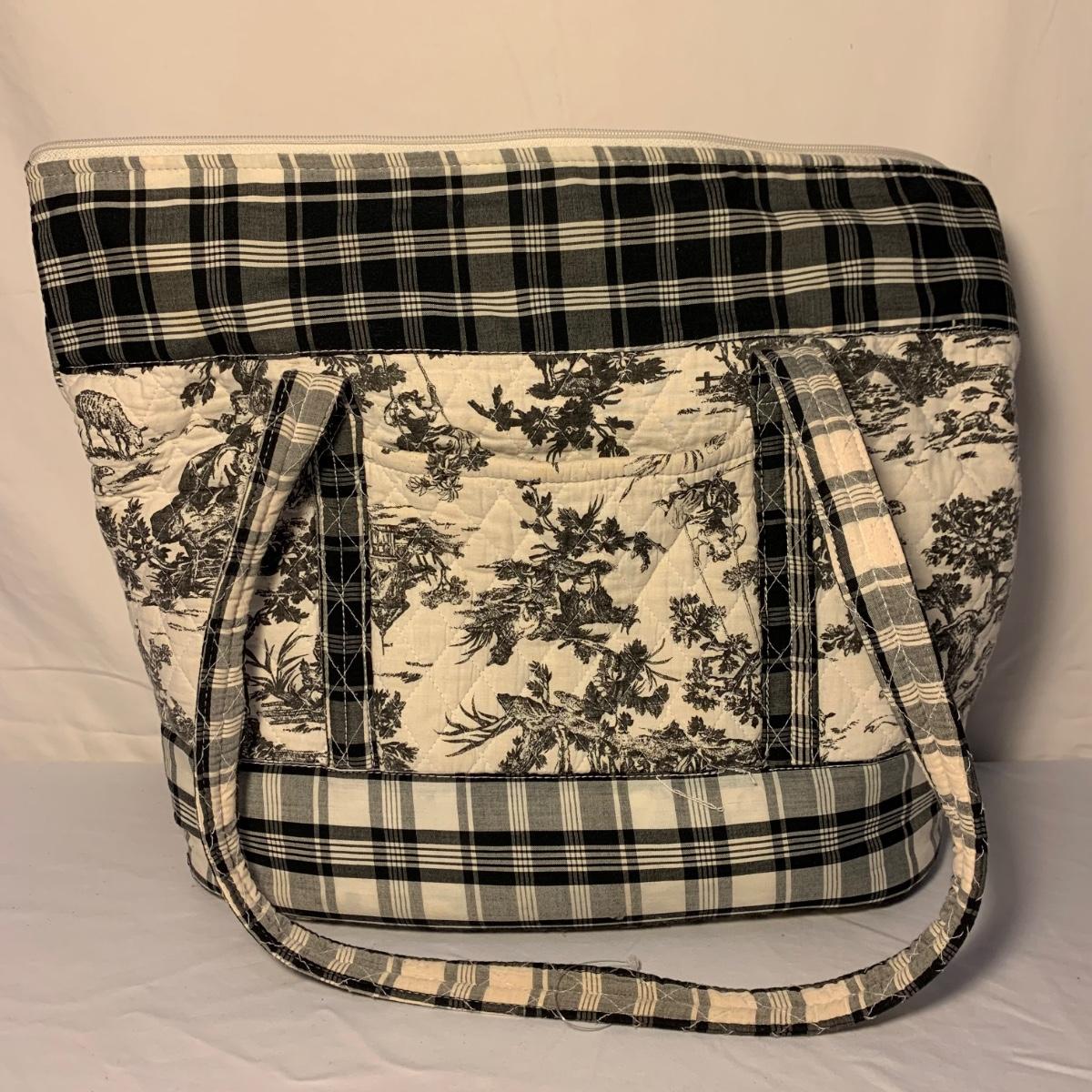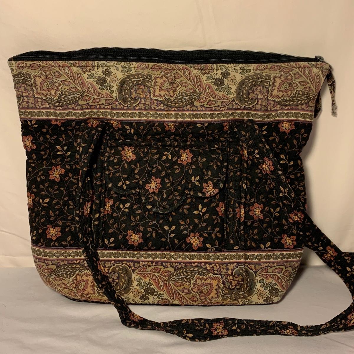 A collection of 12 bags including tote bags, hand bags, and a duffel bag. Eight of the bags are Vera Bradley. The largest item is the red bag with green paisley top border; it measures 18” x 5” x 17”H (not including the handle). Some wear; see photos.