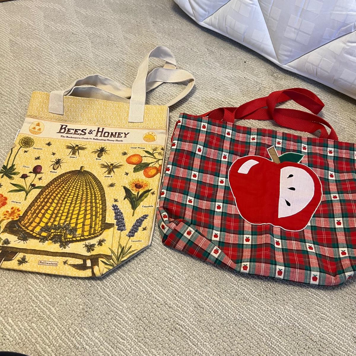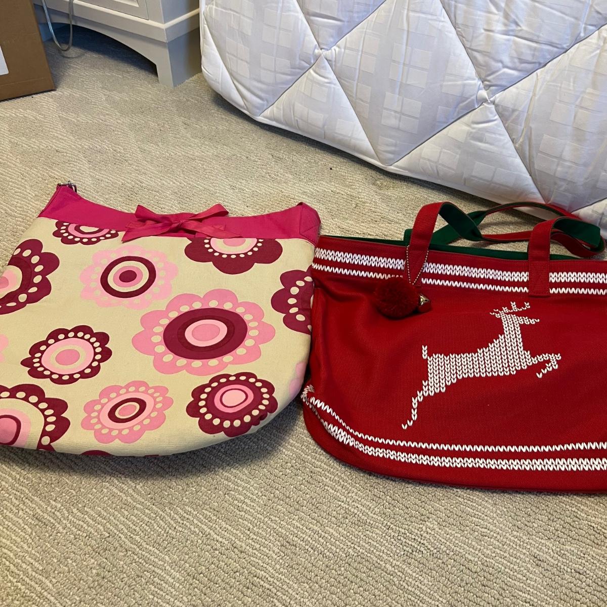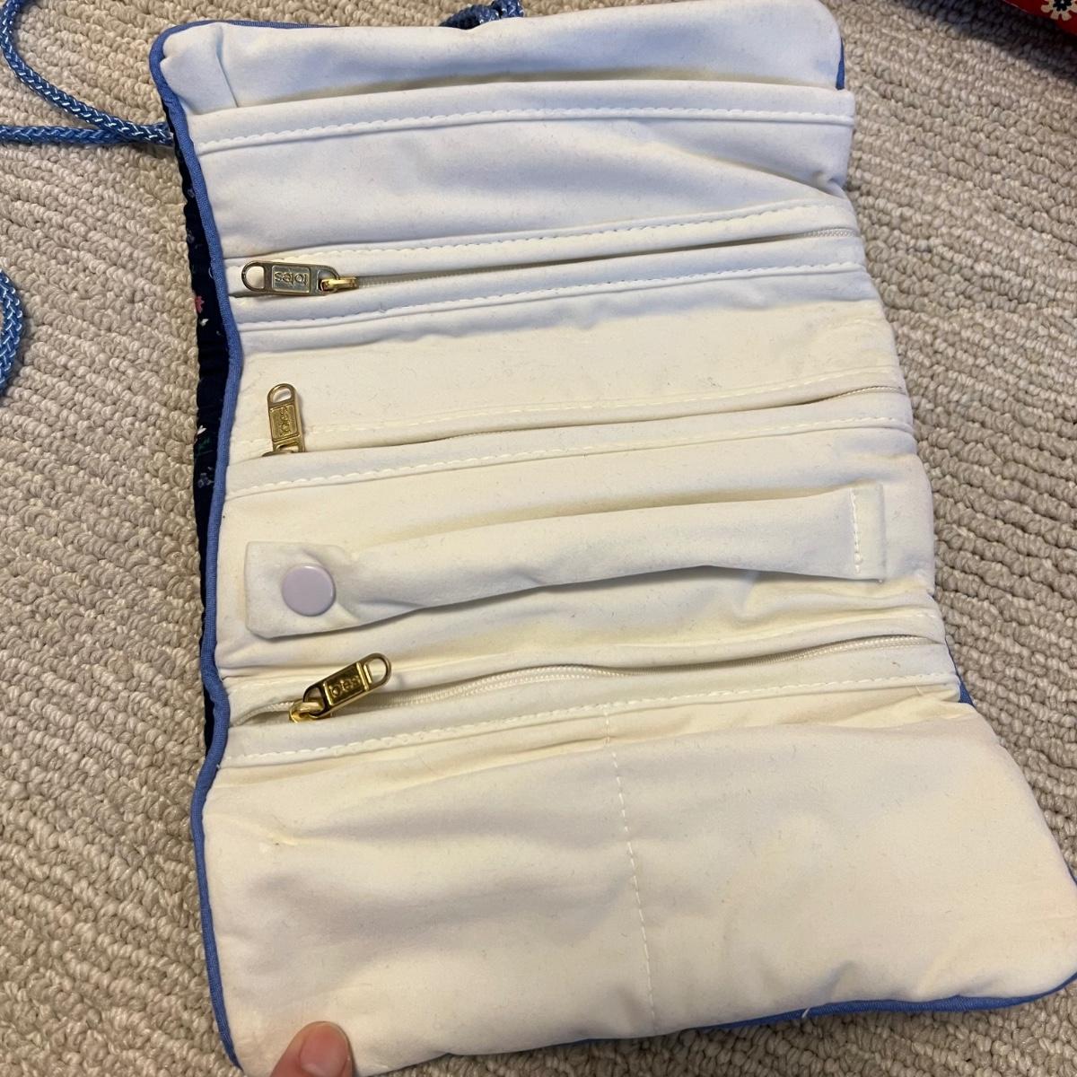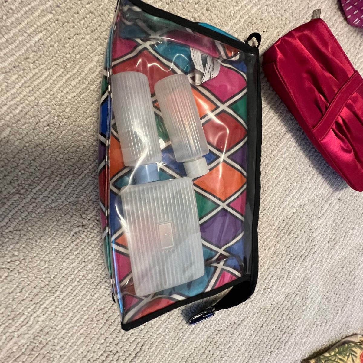 This assortment of soft sided bags includes five totes. Red paisley is a Vera Bradley, a woven basket style bag (has a few stains inside) plus make up bags and jewelry storage bags. One of the jewelry bags is also Vera Bradley.