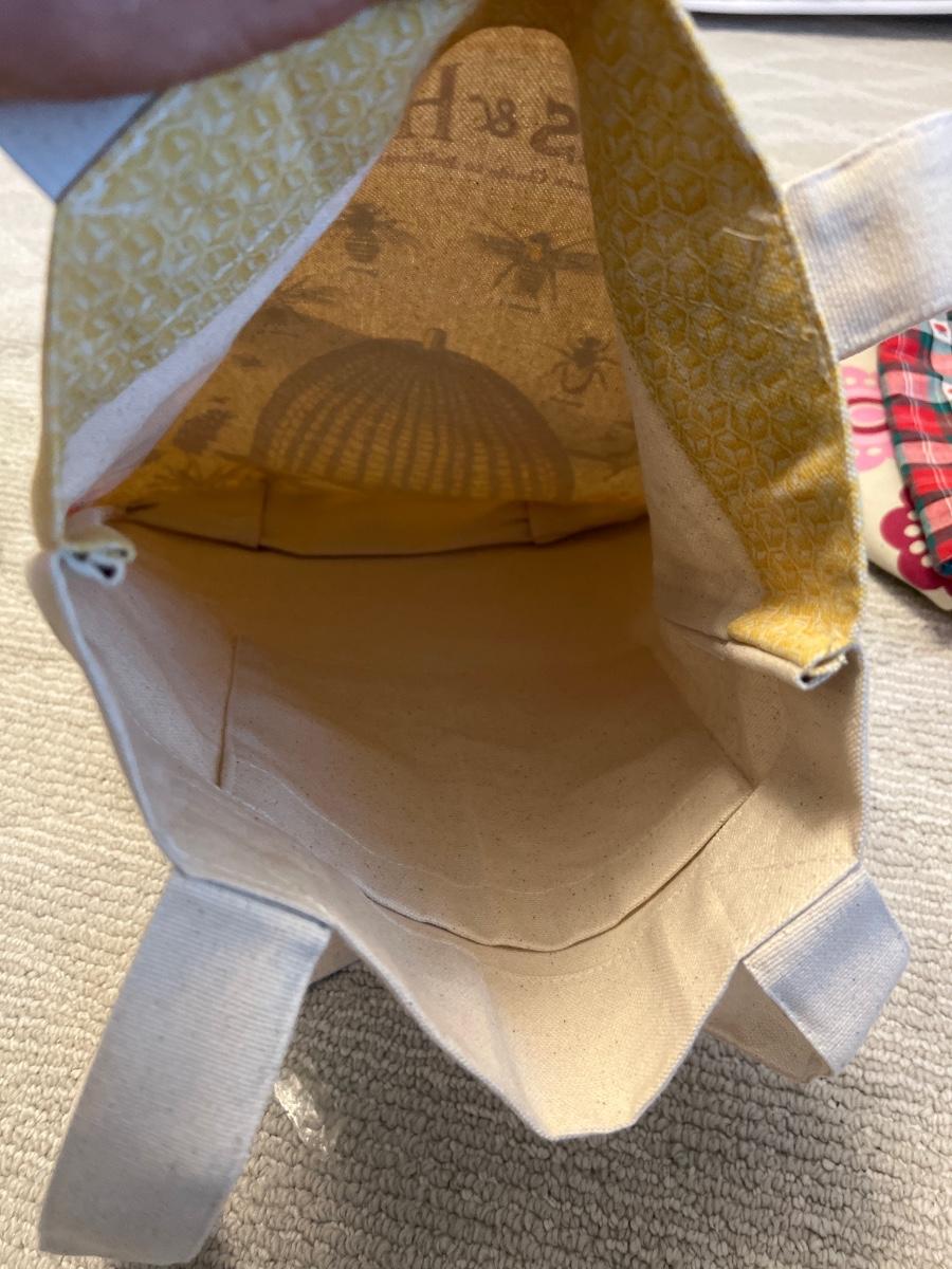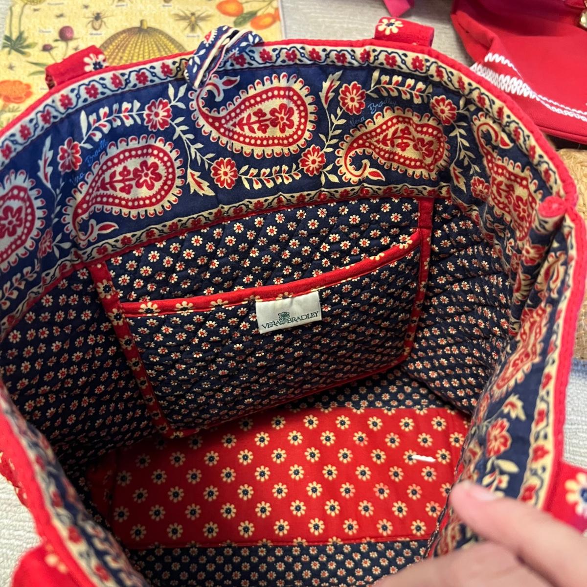 Vera Bradley tote measures 15” x 4” x 13”H.