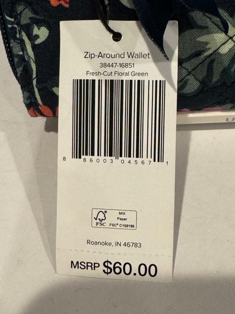 Vera Bradley Zip-Around Wallet. Fresh-cut Floral Green.