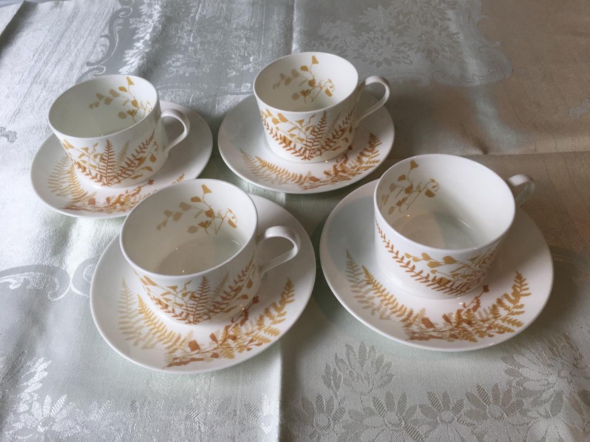 Vintage Lacy Fern pattern cups and saucers set of 4. Designed by renowned and highly collectible Vera. Excellent condition.