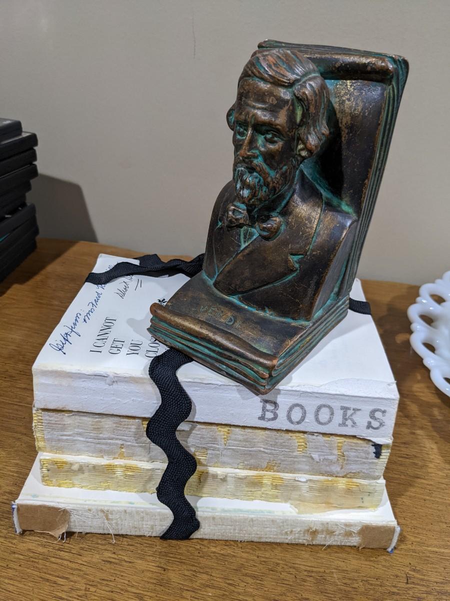 one bookend and décor stack