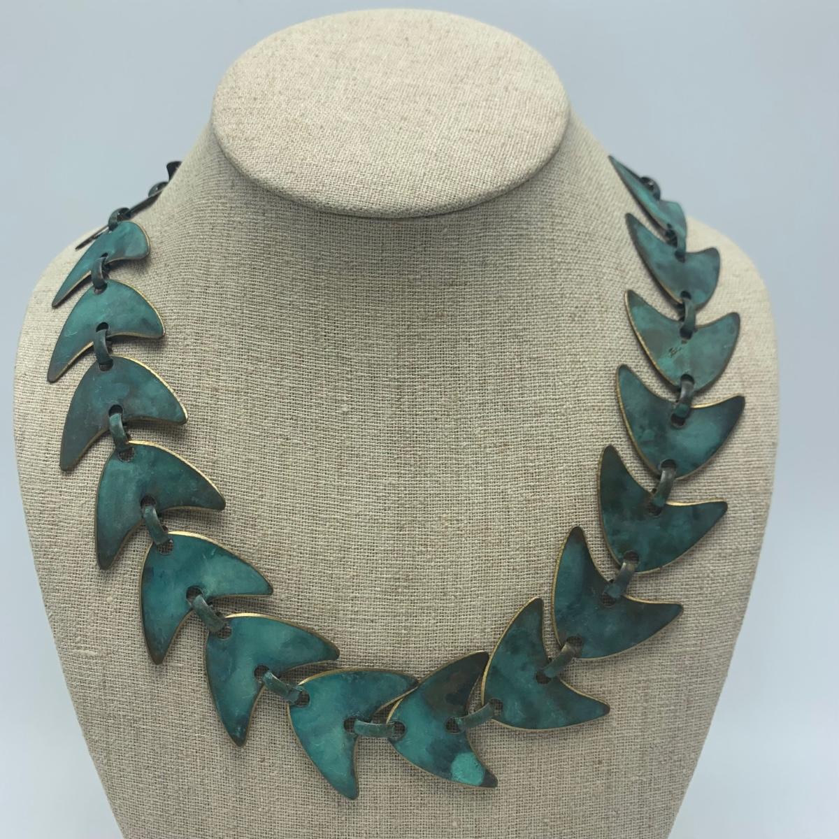 Verdigris Brass Necklace & Teal Colored Earrings (B2-HS)