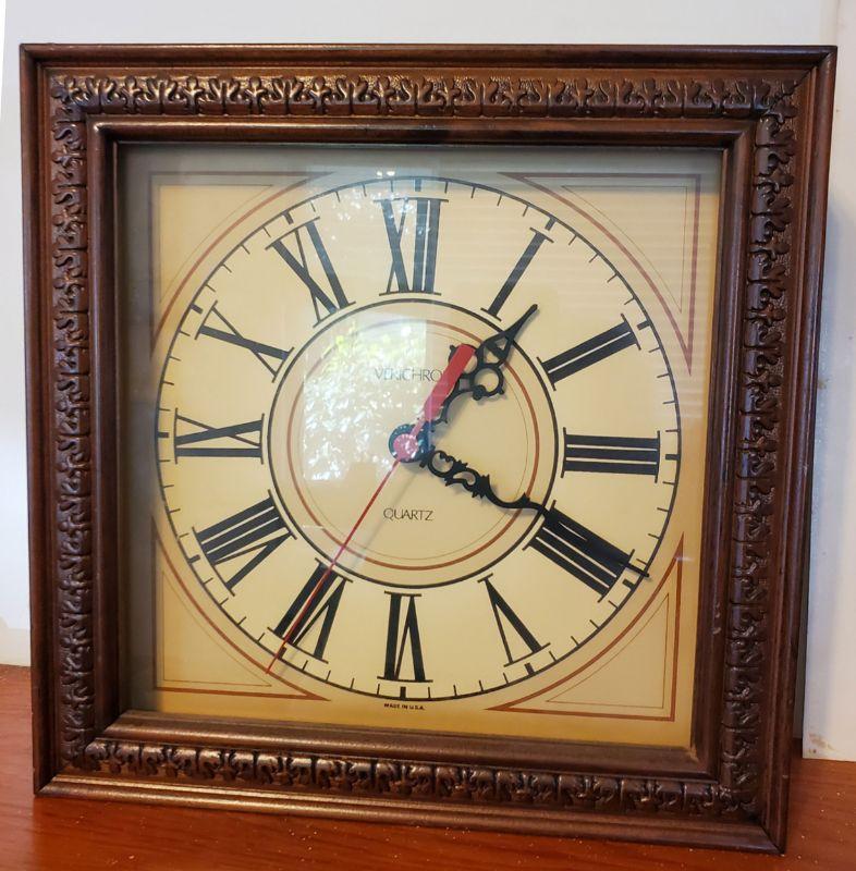 In carved wood case.Good condition. 11" x 11" and is 2 1/2" deep.